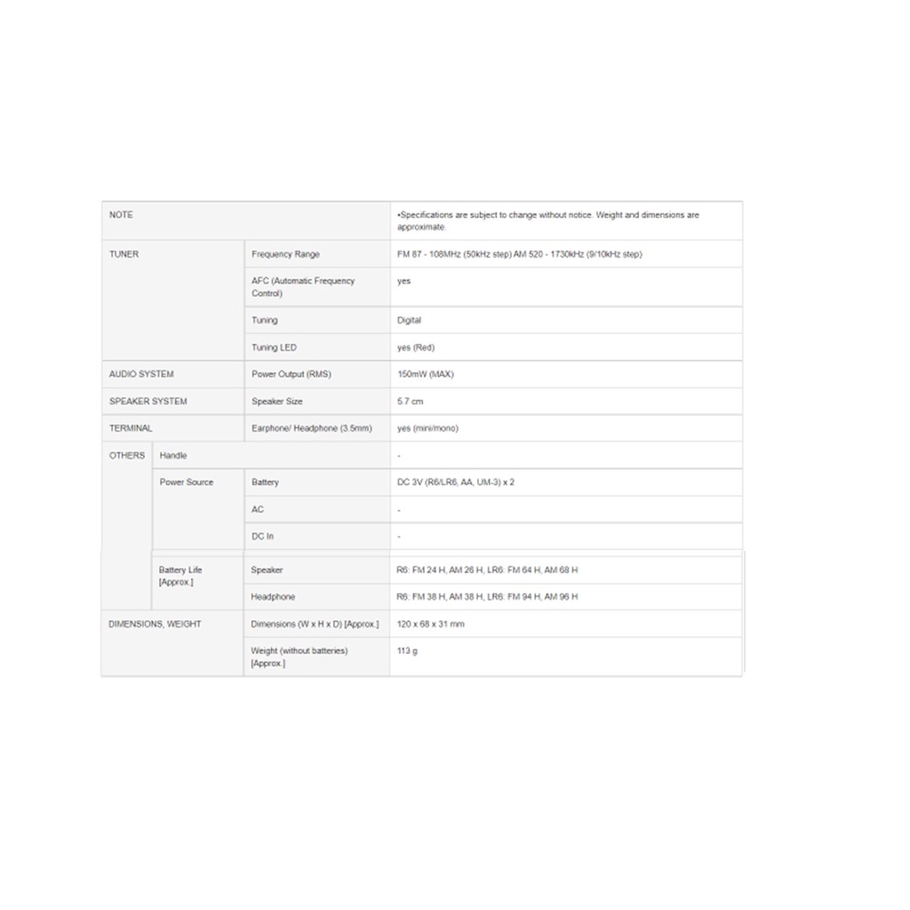 Panasonic Portable Radio RF-P150