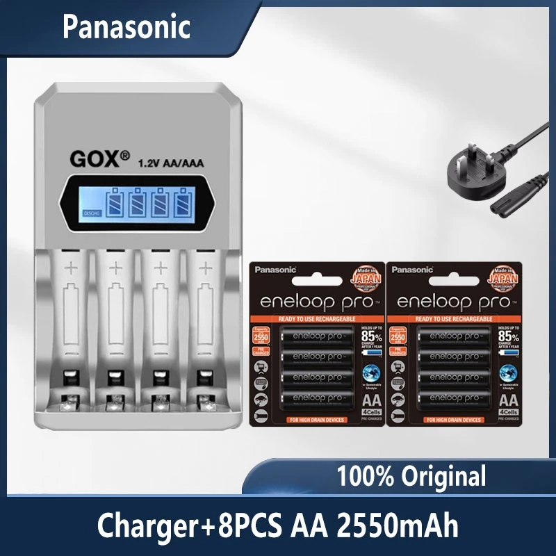 Panasonic eneloop Por AA & AAA 1.2V NI-MH rechargeable battery with 4 Slots LCD Display Smart Battery Charger UK Plug Power Adapter