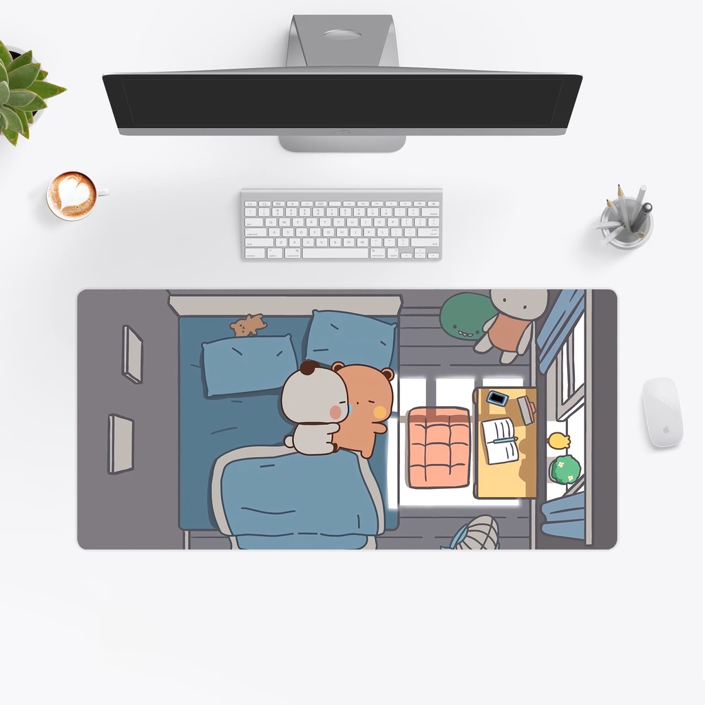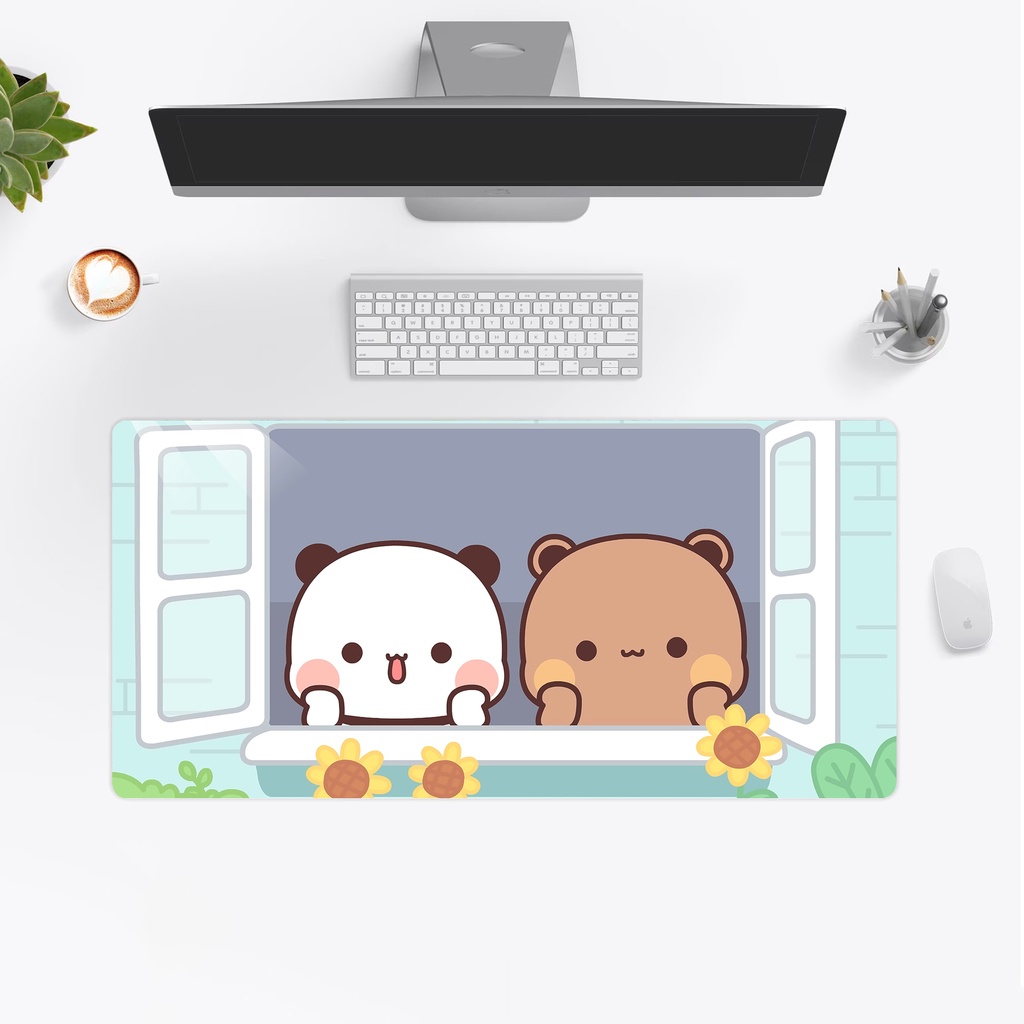 Panda Bear Hug Bubu Dudu Gaming Mouse Pad Keyboard Desk Mat Mochi Mochi Peach Cat XXL Waterproof Mousepad for Computer