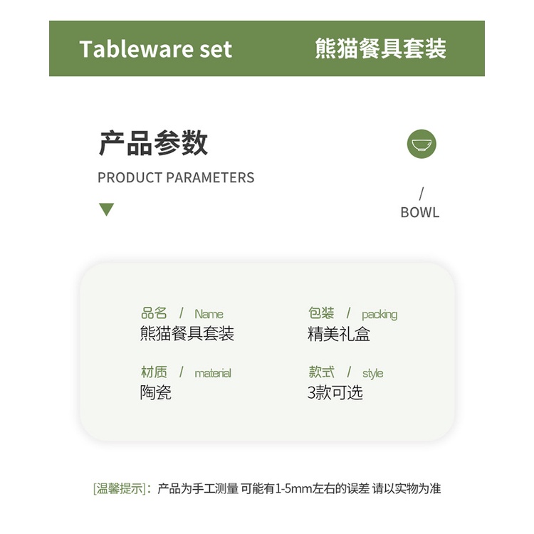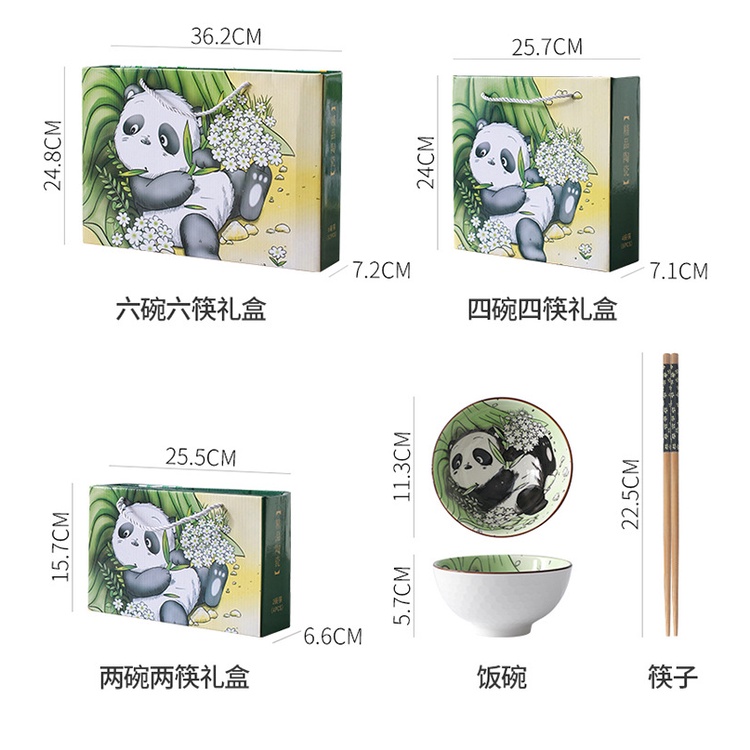 Panda Porcelain Tableware Set - Bowls & Chopsticks