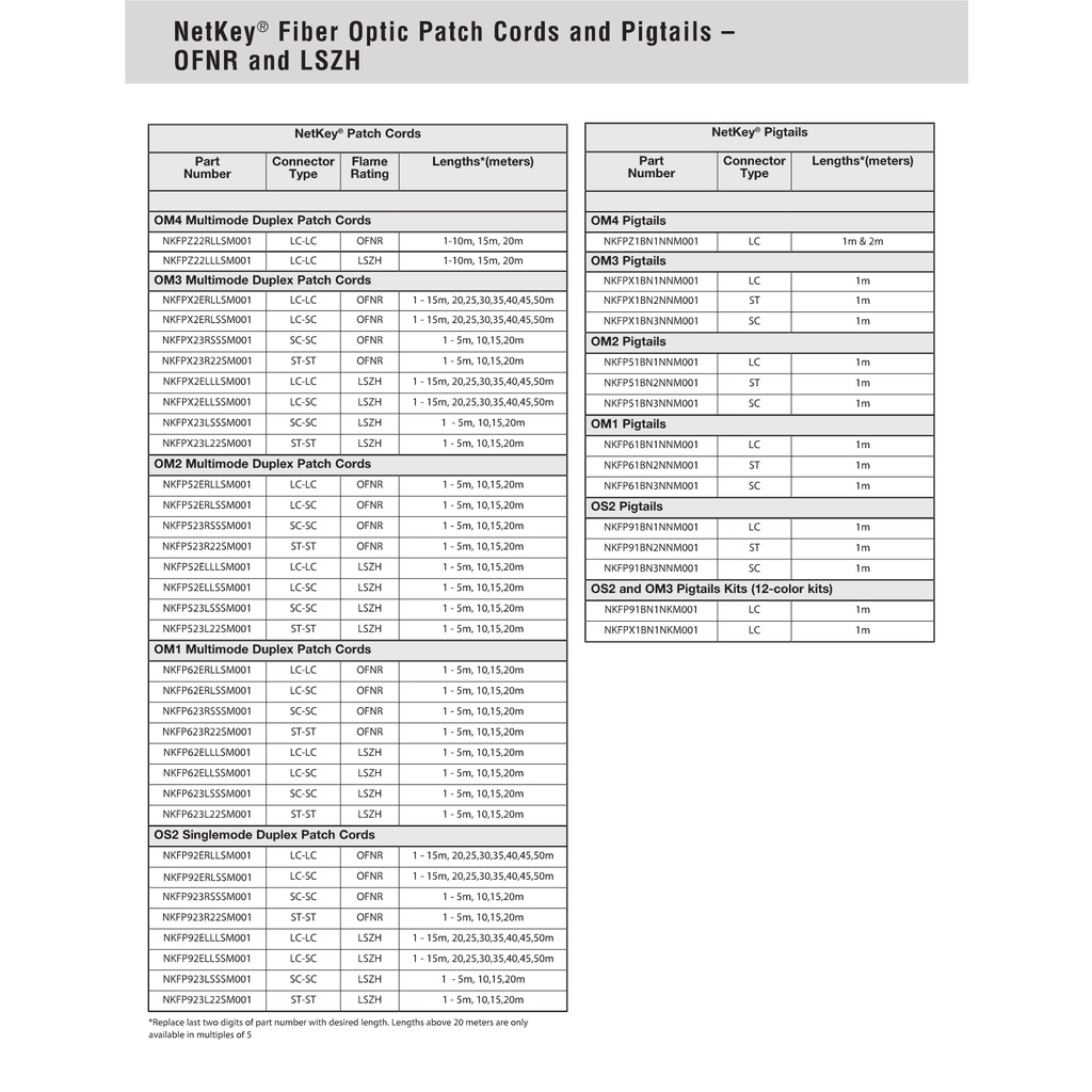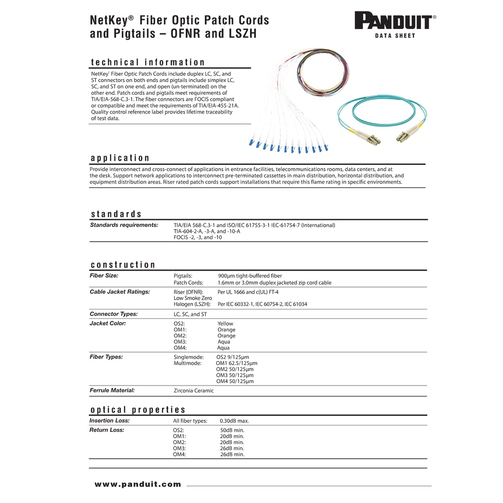 Panduit NetKey 2-fiber Multimode OM4 LC Duplex Patch Cord LSZH - 1m/2m/3m/5m/10m (NKFPZ22LLLSM)