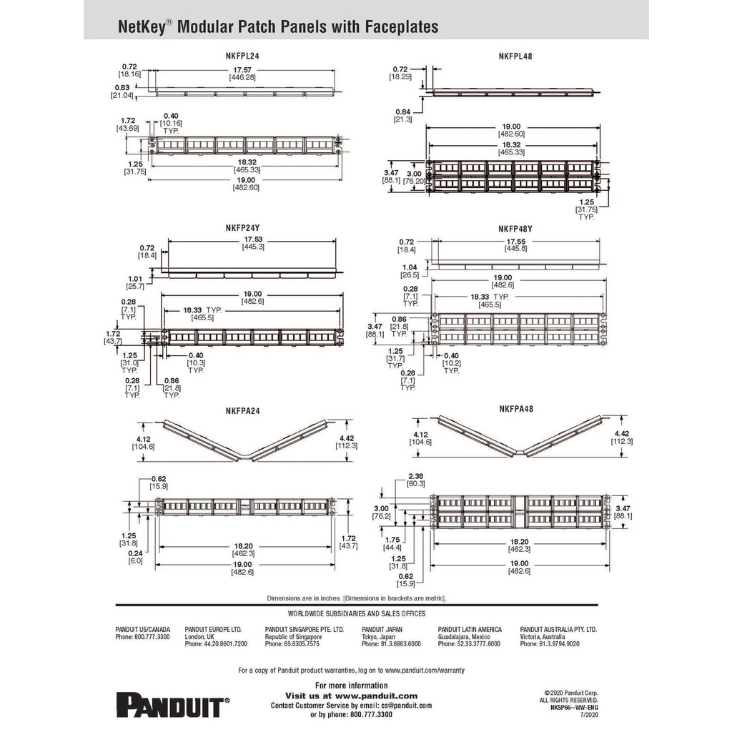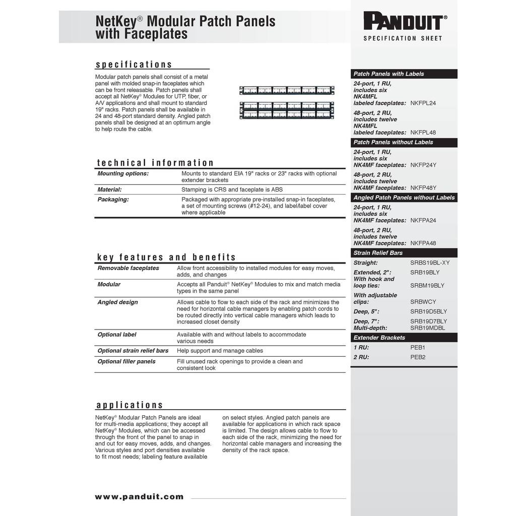 Panduit NetKey Modular Patch Panel Faceplate with Label, 24 Port 1RU (NKFPL24) / 48Port 2RU (NKFPL48)