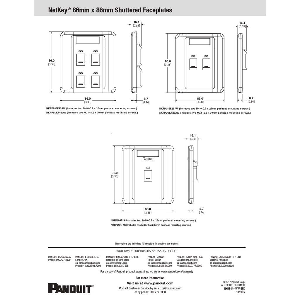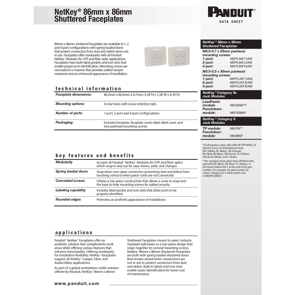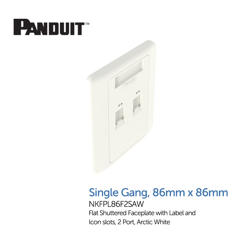 Panduit Netkey Flat Shuttered Faceplate, Arctic White - 1 Port (NKFPL86F1SAW) / 2 Port (NKFPL86F2SAW)