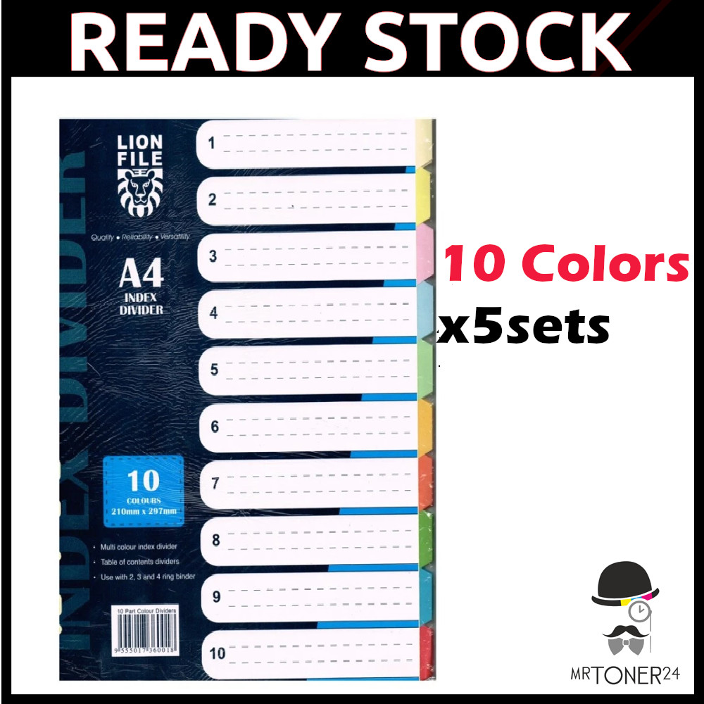 Lion File A4 Color Paper Index Divider File Filing Separator 10Colour 5sets (50sheets total)