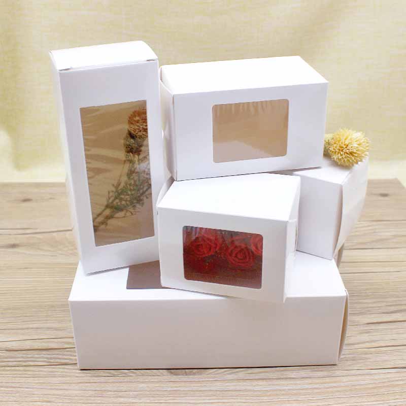 Paper window box 10Pcs DIY White Packing Gift Boxes with pvc window for Candy/Cake/Soap/toy Display wedding party Box