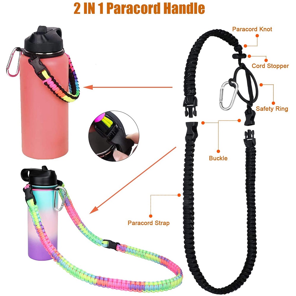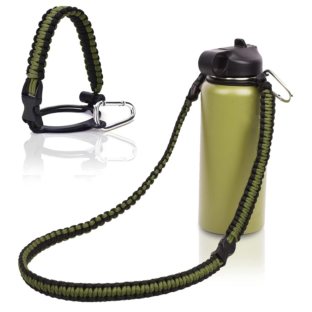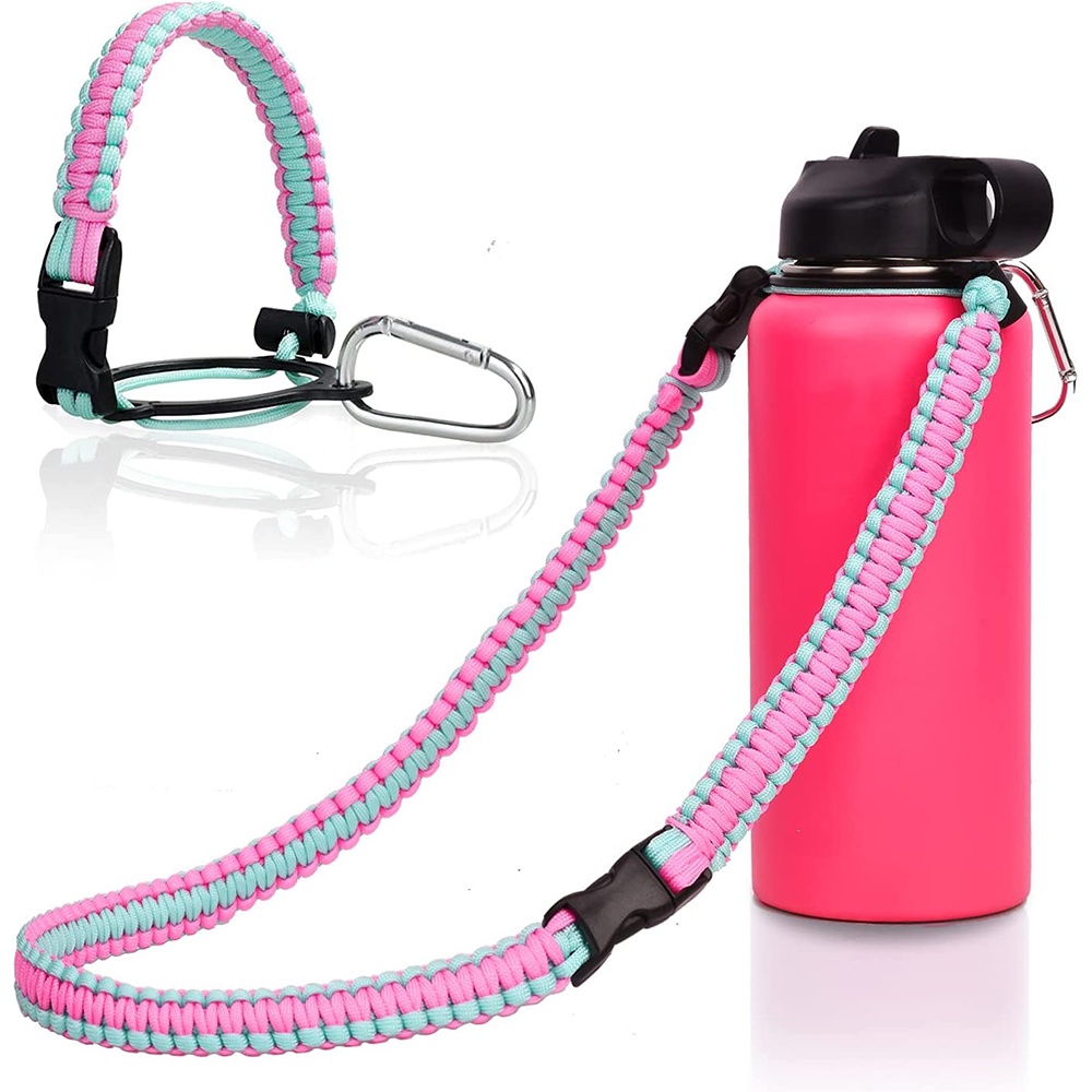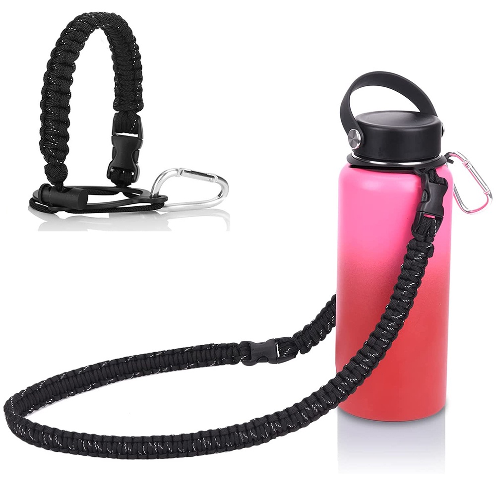 Paracord Handle with Shoulder Strap for Aquaflask Wide Mouth Water Bottles, Paracord Strap Carrier for 12oz to 64oz Bottle, Bottle Accessories with Safety Ring Carabiner