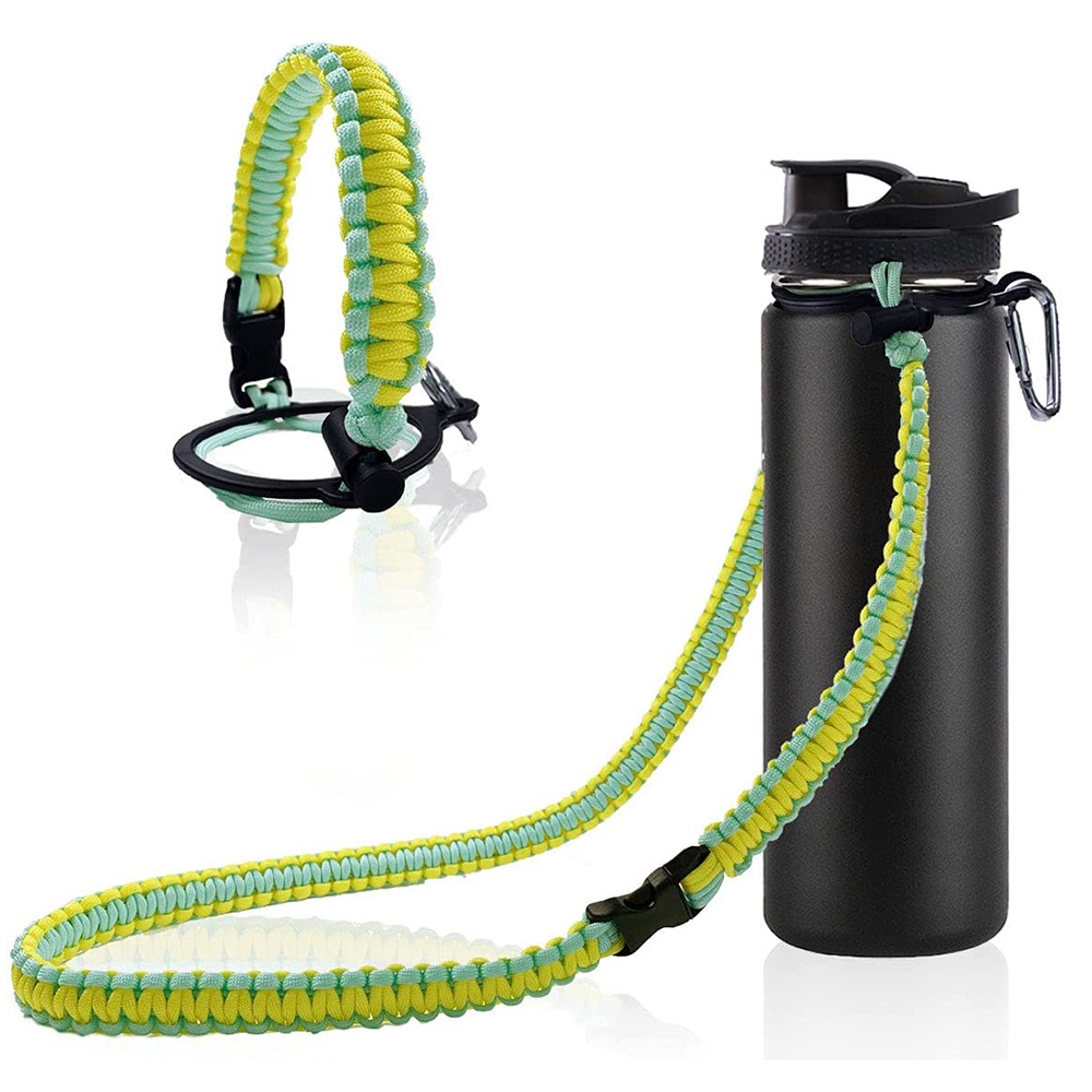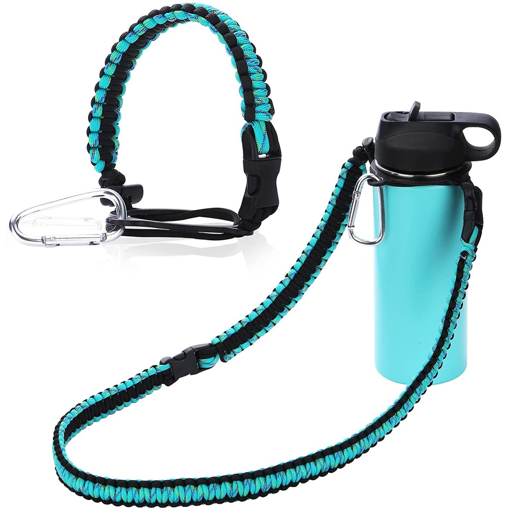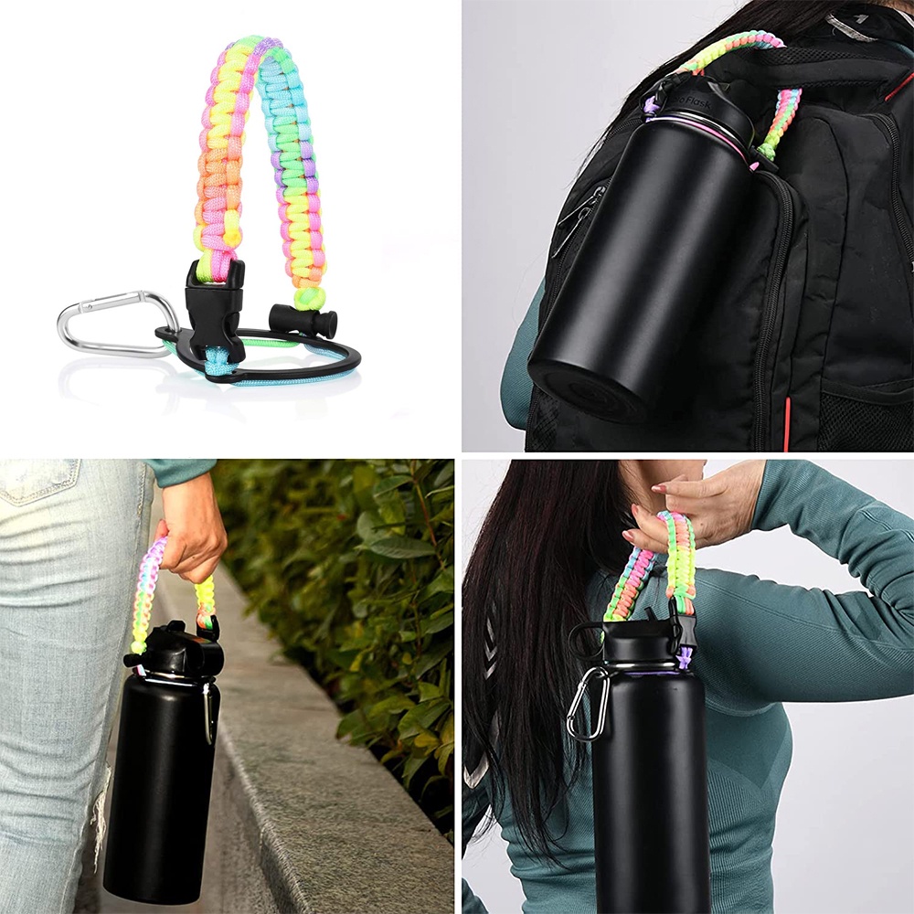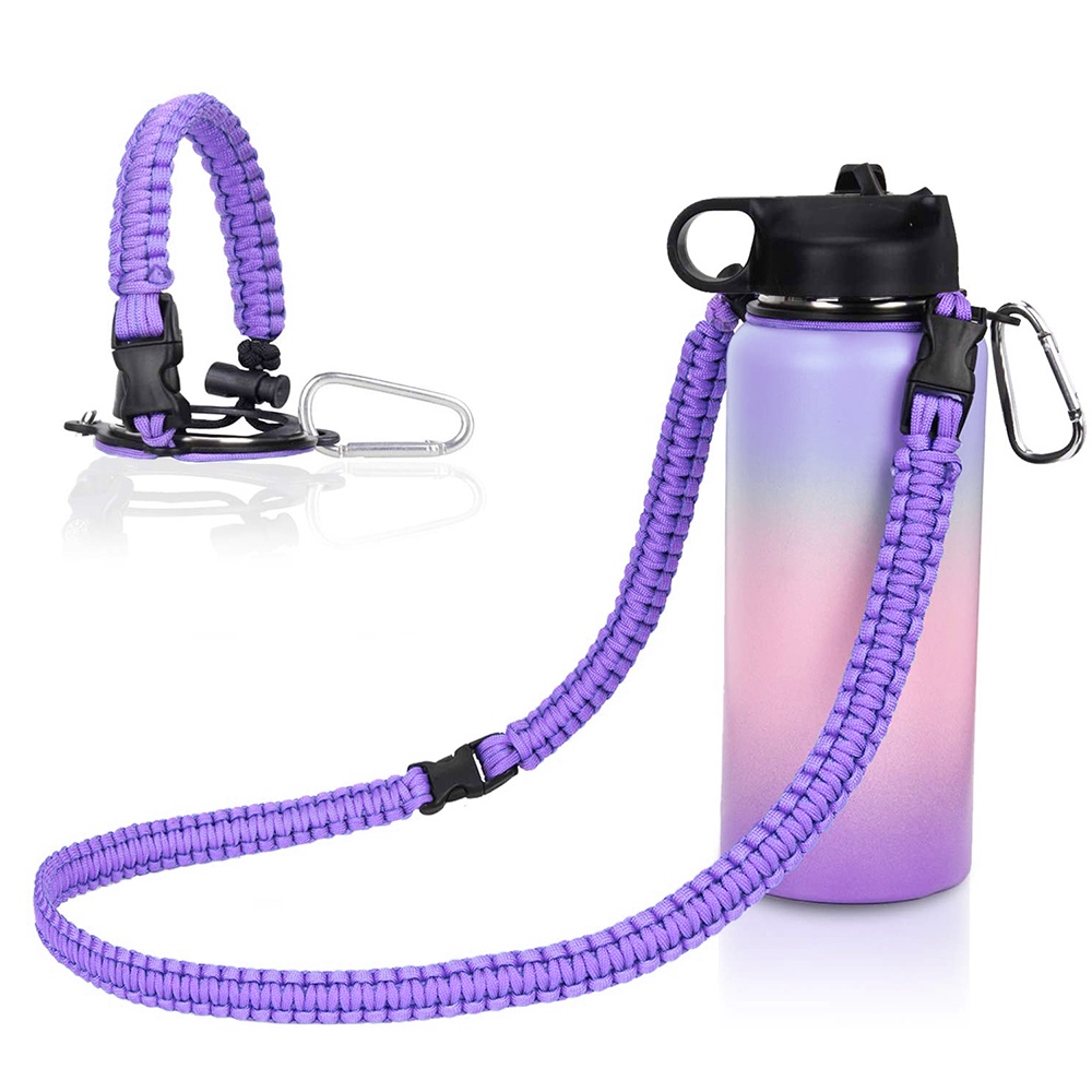 Paracord Handle with Shoulder Strap for Aquaflask Wide Mouth Water Bottles, Paracord Strap Carrier for 12oz to 64oz Bottle, Bottle Accessories with Safety Ring Carabiner