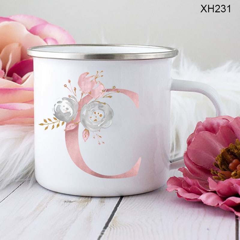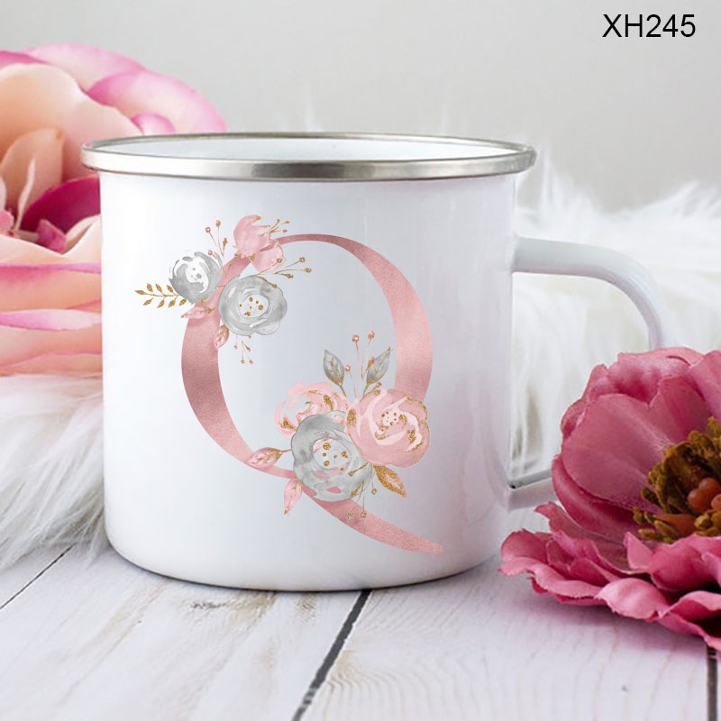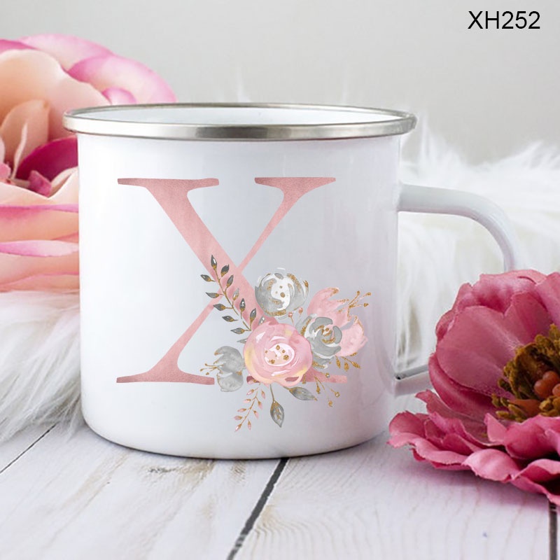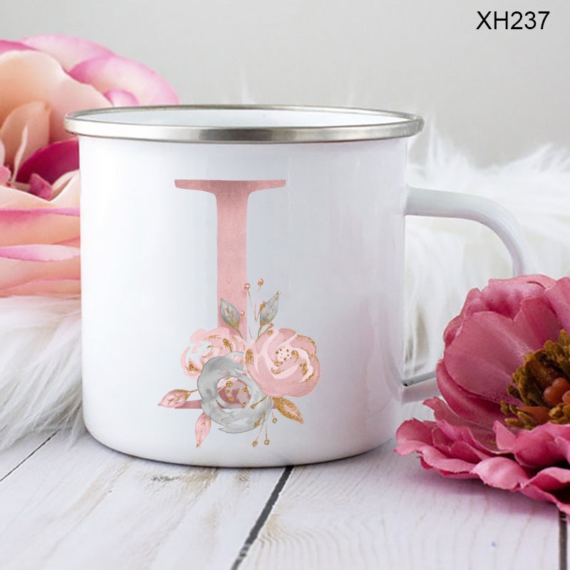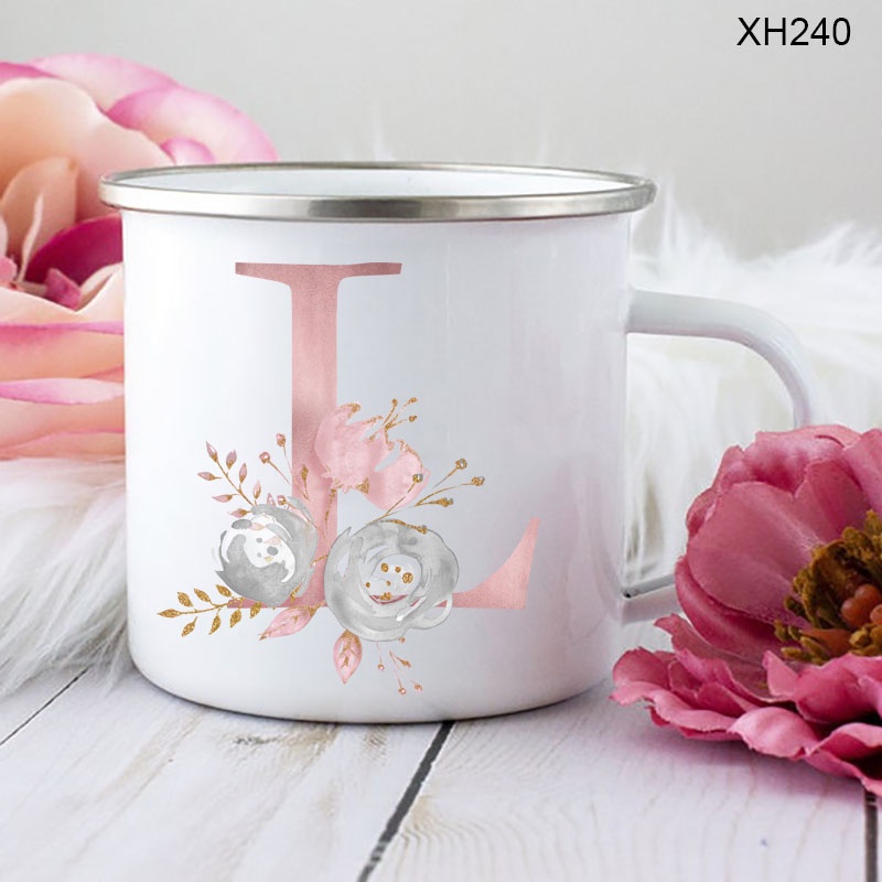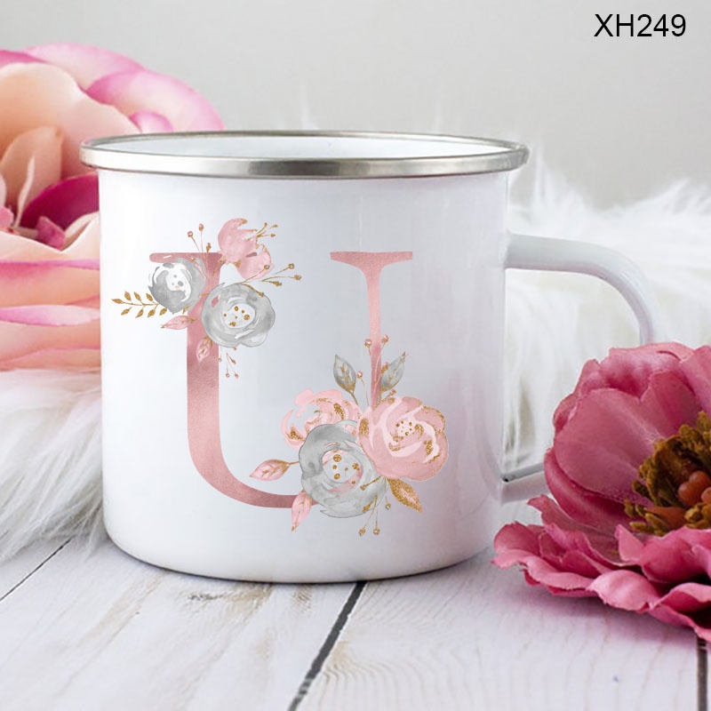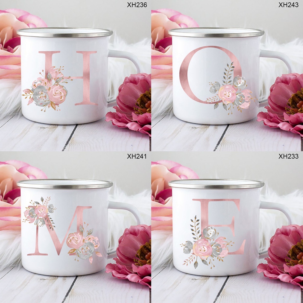 Flora Letter Print Enamel Coffee Mugs Party Juice Drink Water Cups Mug Home Kitchen Drinkware House Warming