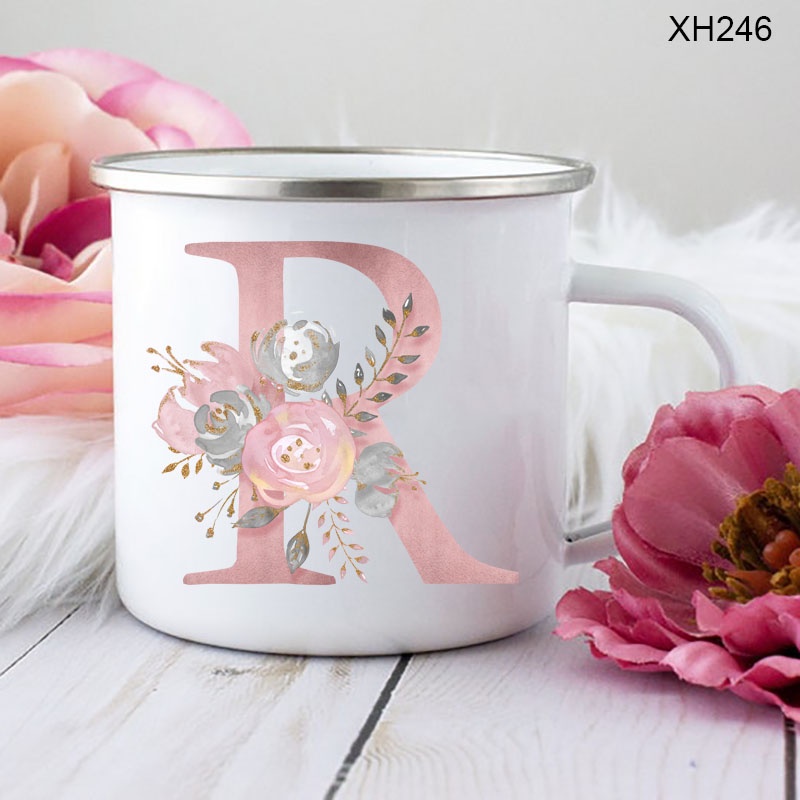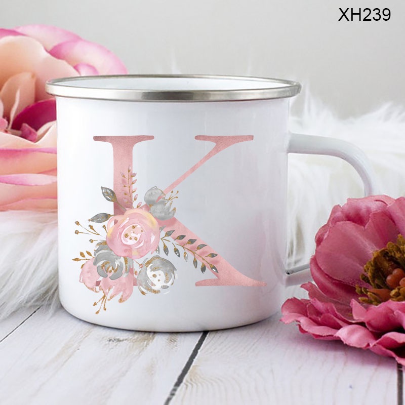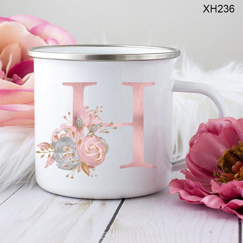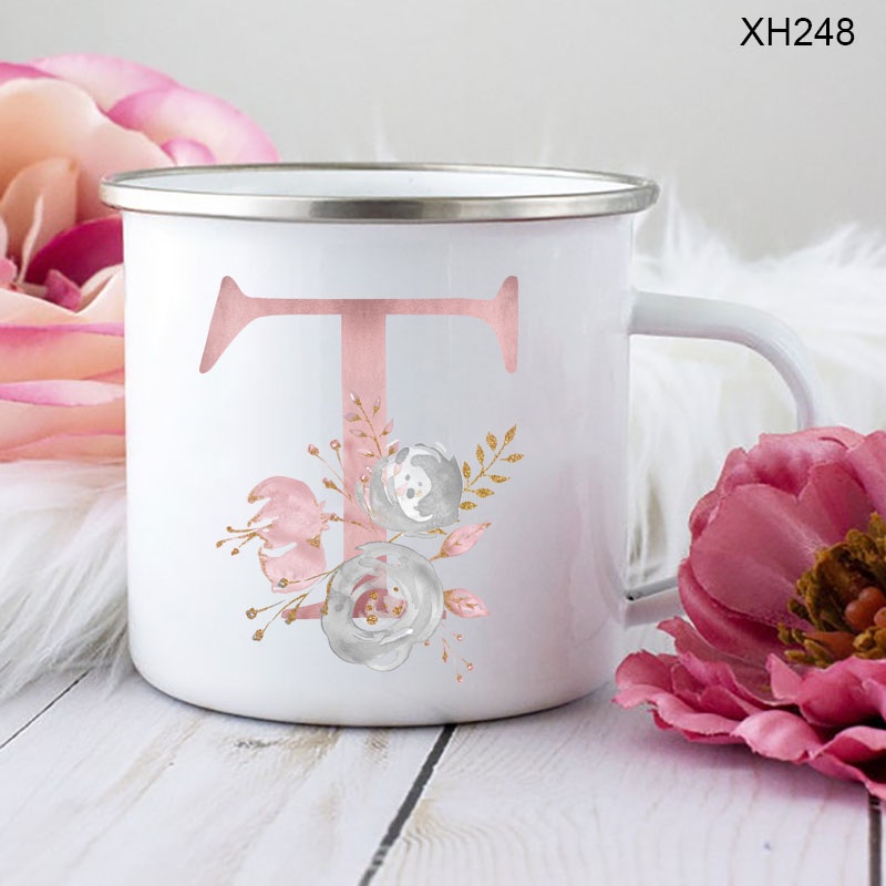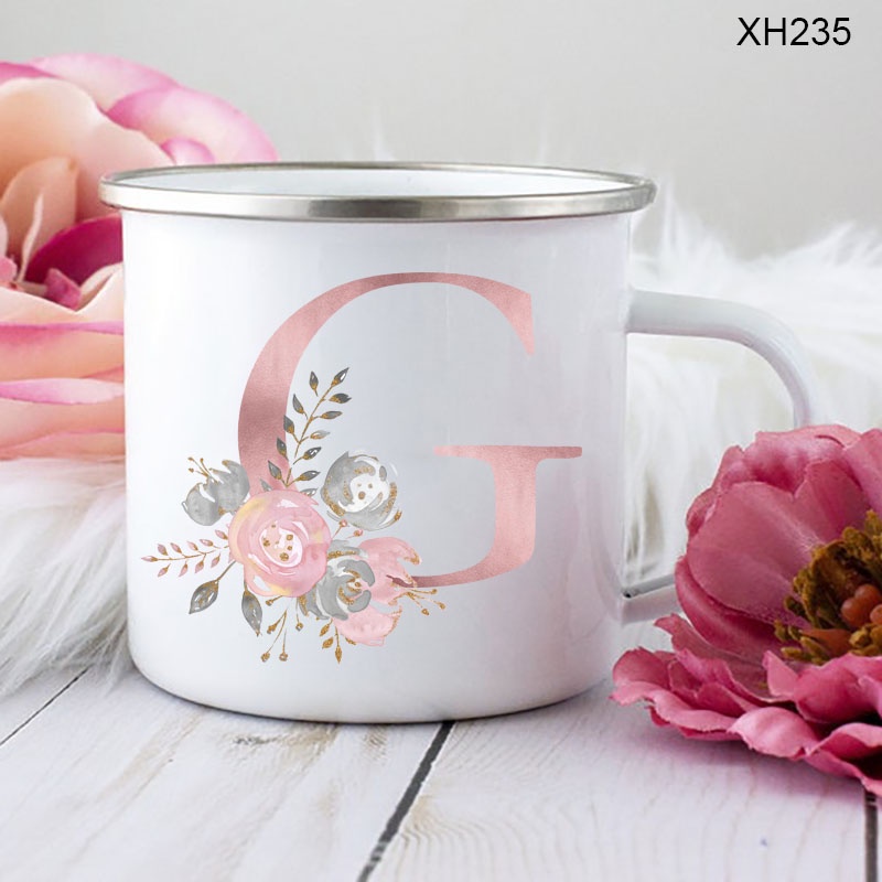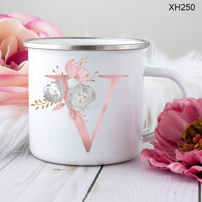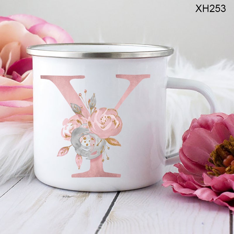 Flora Letter Print Enamel Coffee Mugs Party Juice Drink Water Cups Mug Home Kitchen Drinkware House Warming