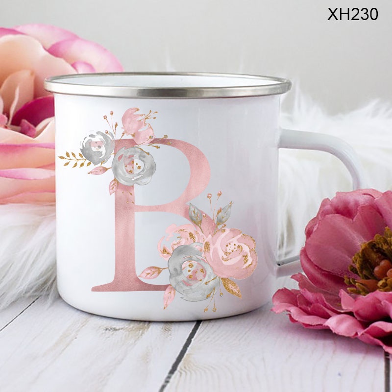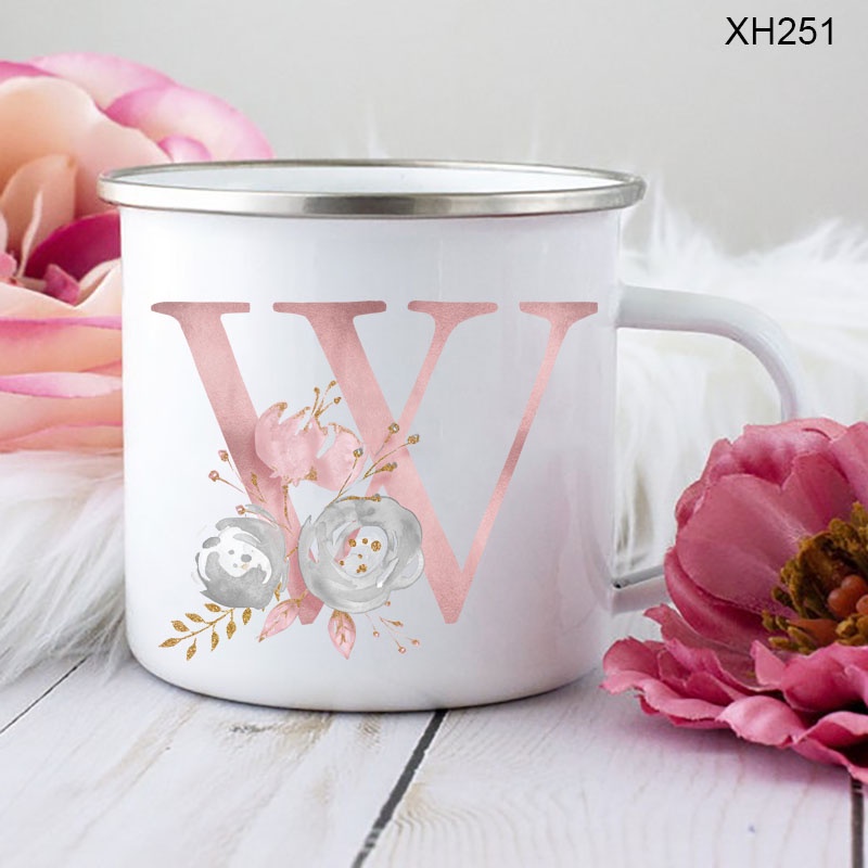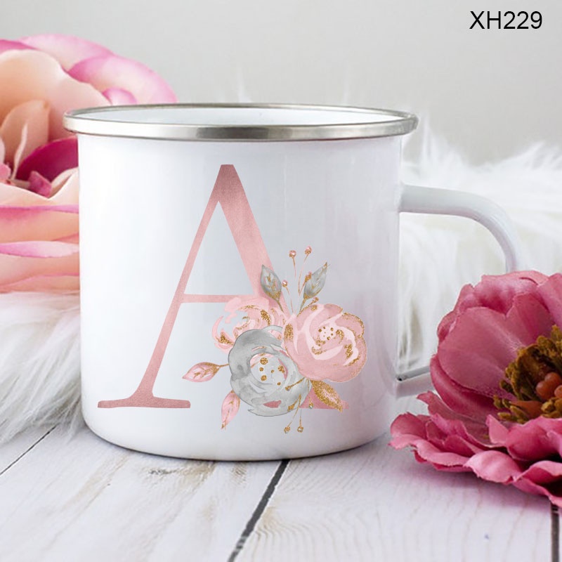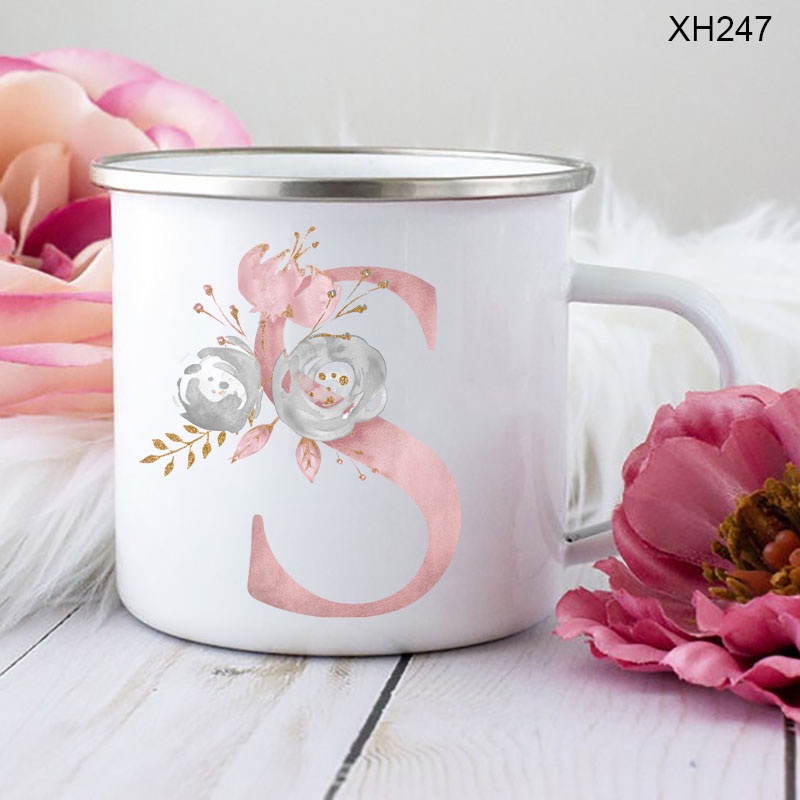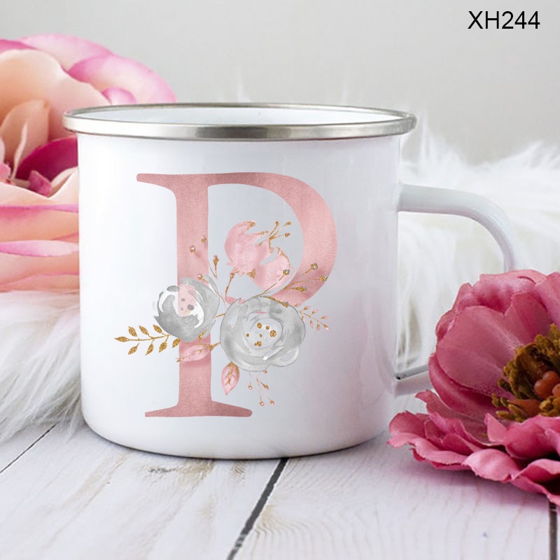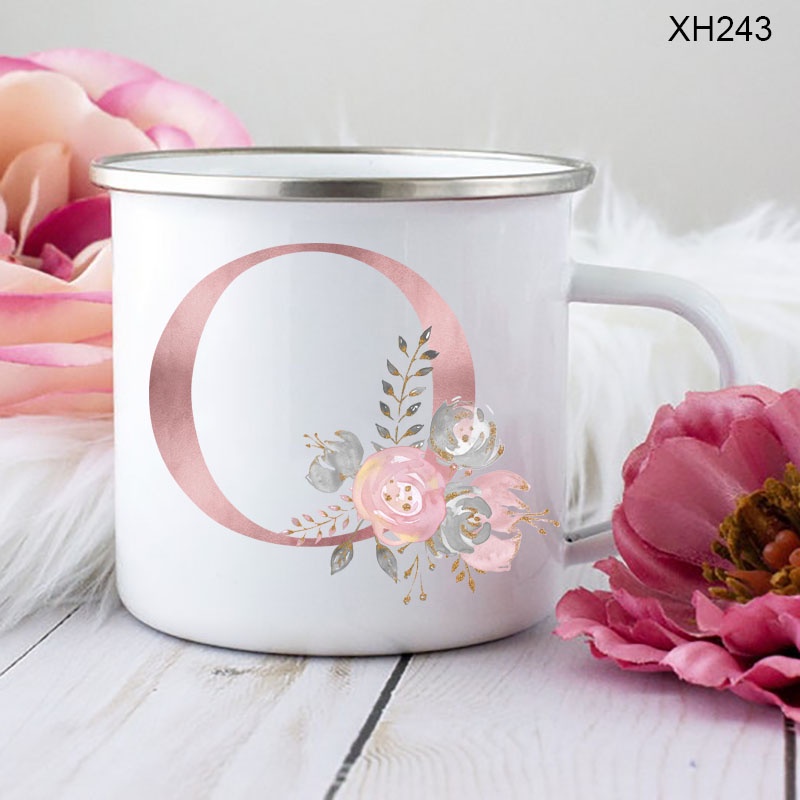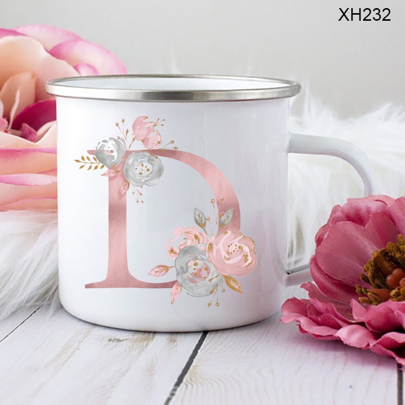 Flora Letter Print Enamel Coffee Mugs Party Juice Drink Water Cups Mug Home Kitchen Drinkware House Warming