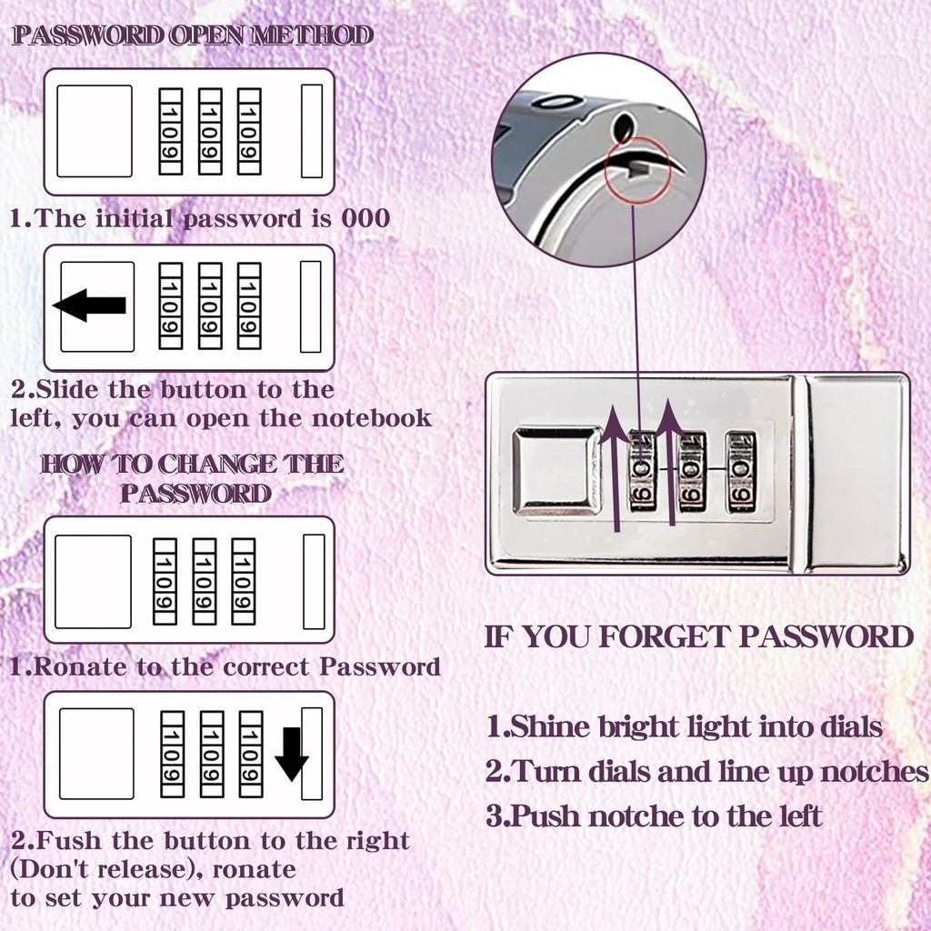 Password Notebook with Coded Lock Secret Diary PU Cute A5 for Girls Boys Office Study Planner Personal Journals Kids Birthday Gift Present Teacher's Day Gift N003