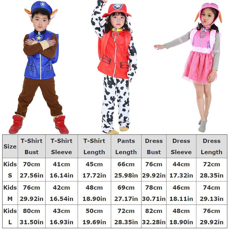 Paw Patrol Costume Chase Marshall Skye Cosplay Costume Kids Cop Cosplay Birthday Party Dress Halloween