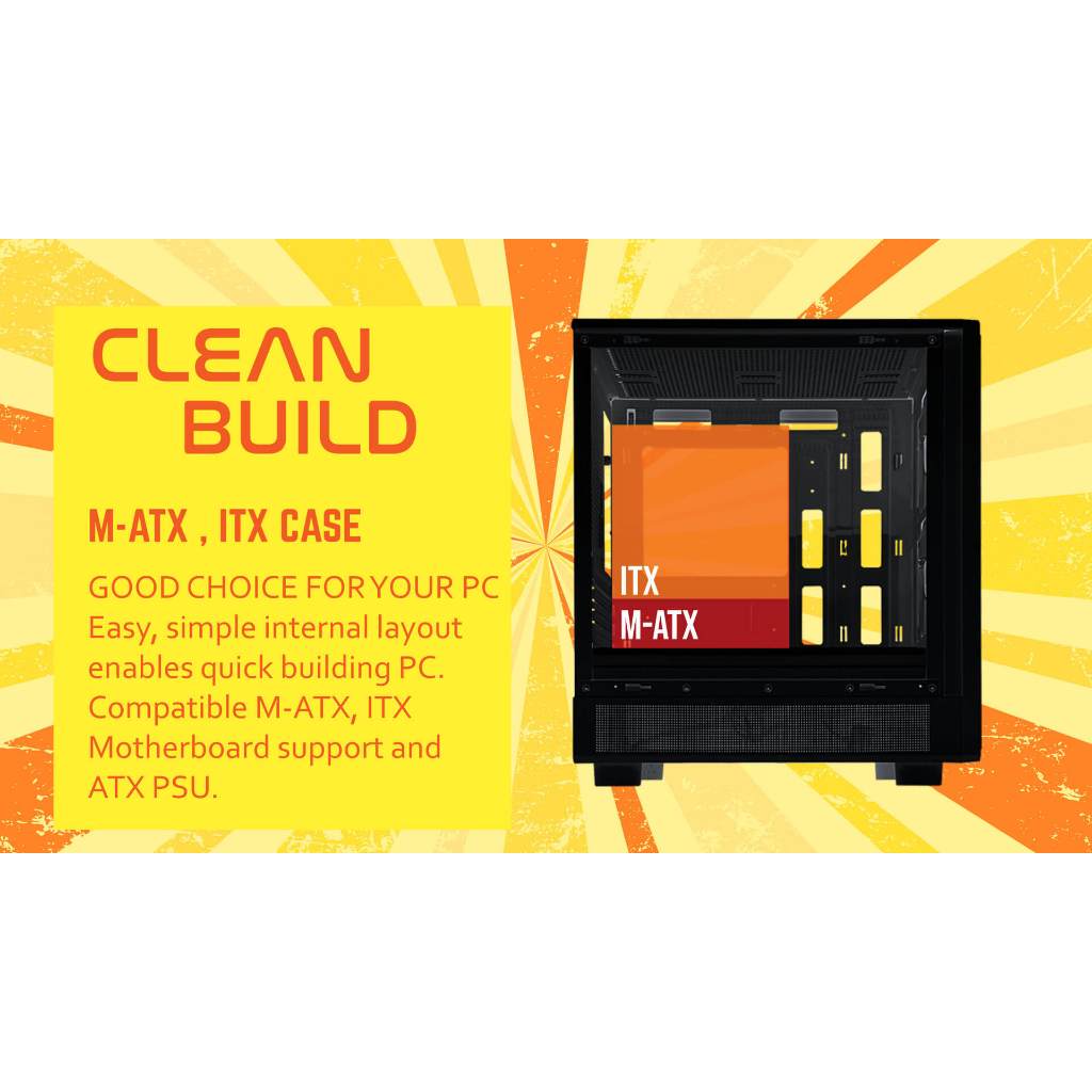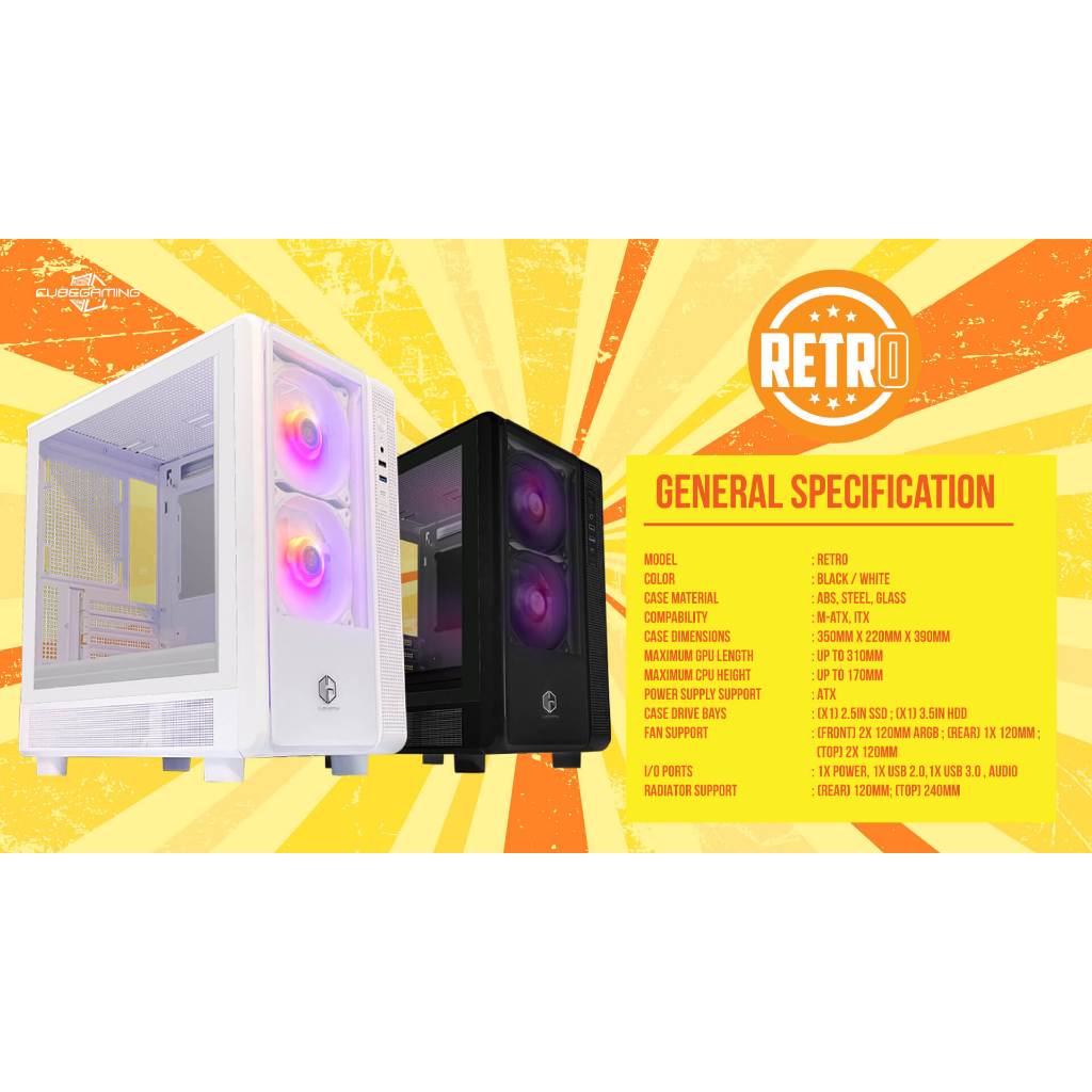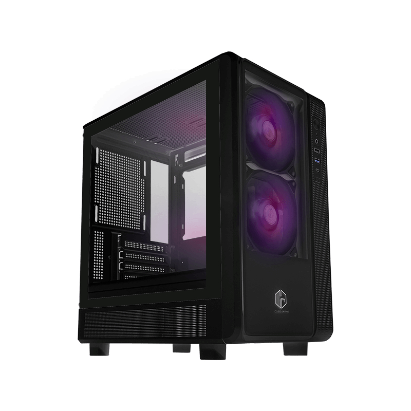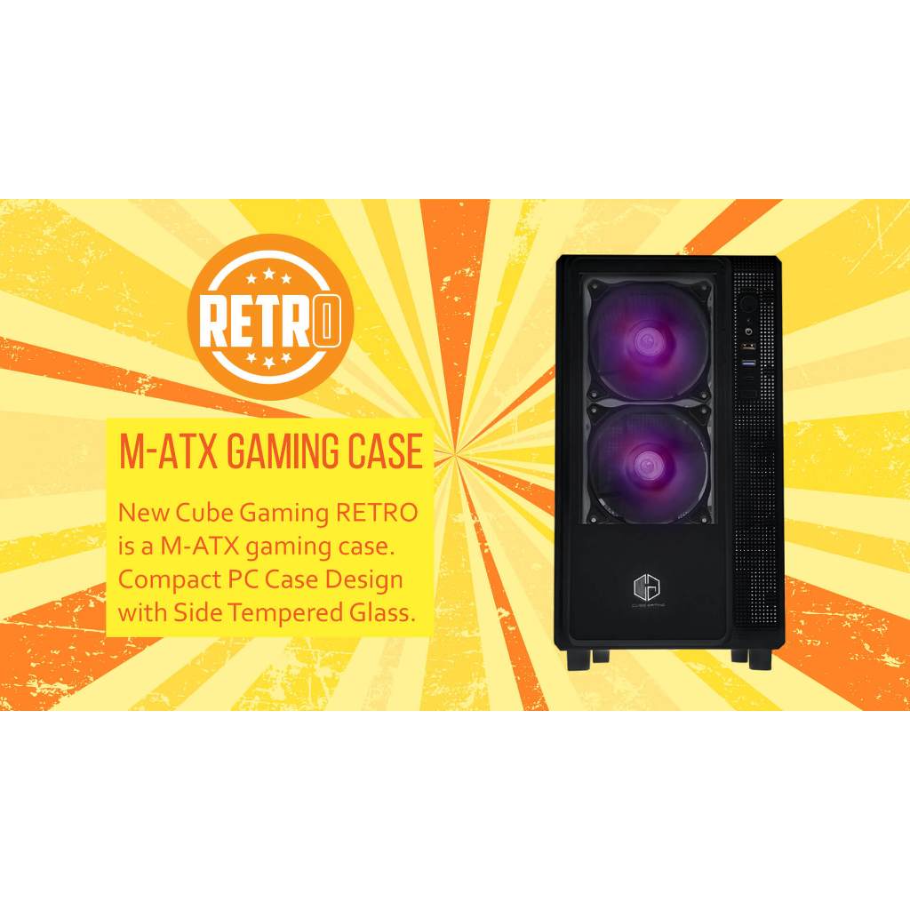 PC CASING CUBE GAMING RETRO GLASS | MATX PC CASE FREE 2x ARGB FAN CASE