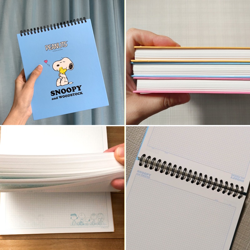Peanuts Snoopy Grid Spiral Thick Notebook Ring Notepad Korean Stationery Woodstock Charlie Brown Lucy