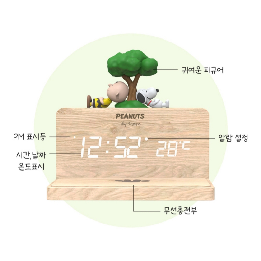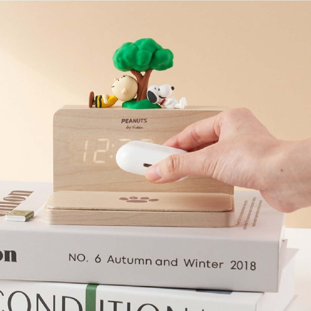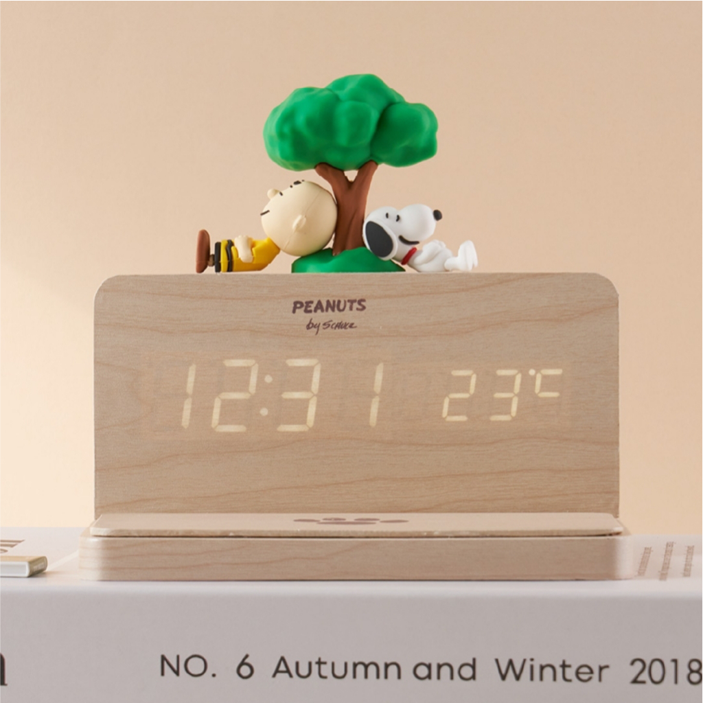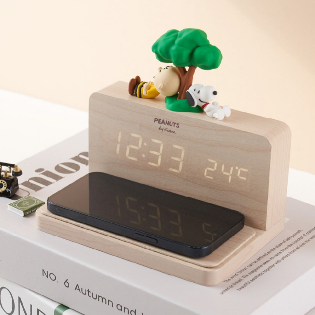 Peanuts Snoopy Wireless Charging Wood LED Clock
