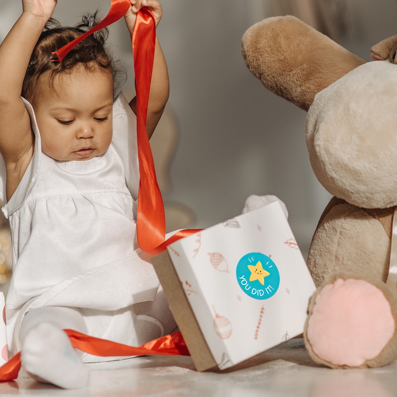 Penlab 1roll Good Job Stickers 500pcs Set 1 Inch Cartoon Animal Rainbow Star Cute Reward Tape C7217