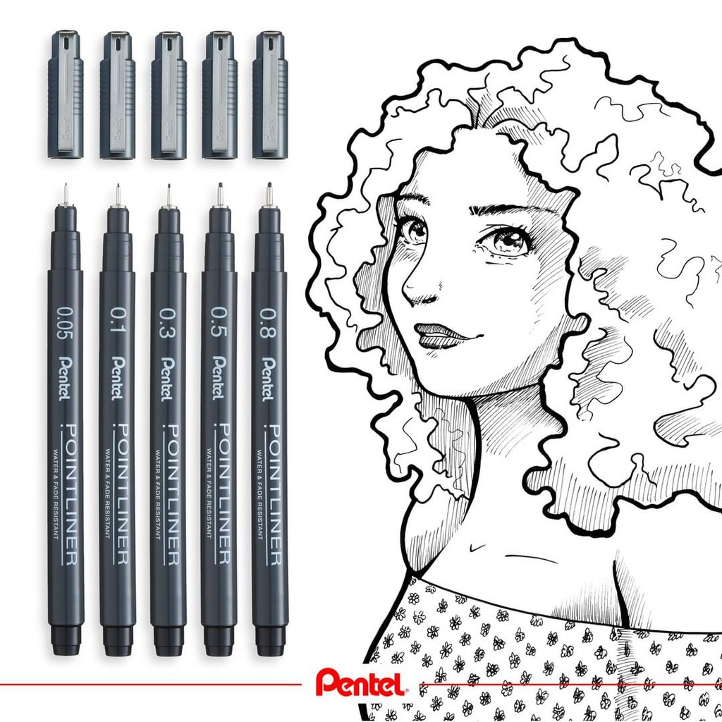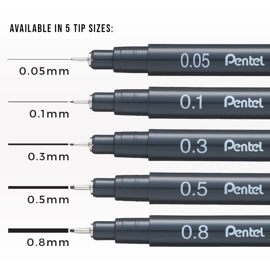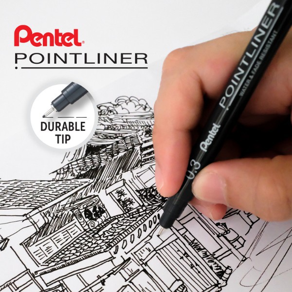 Pentel Pointliner S20P Technical Drawing Drafting Sketching Pen Drawing Pen (0.05/0.1/0.3/0.5/0.8MM)