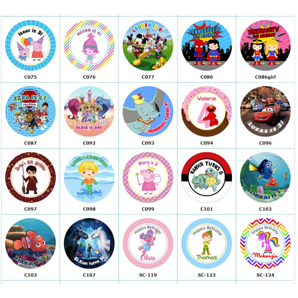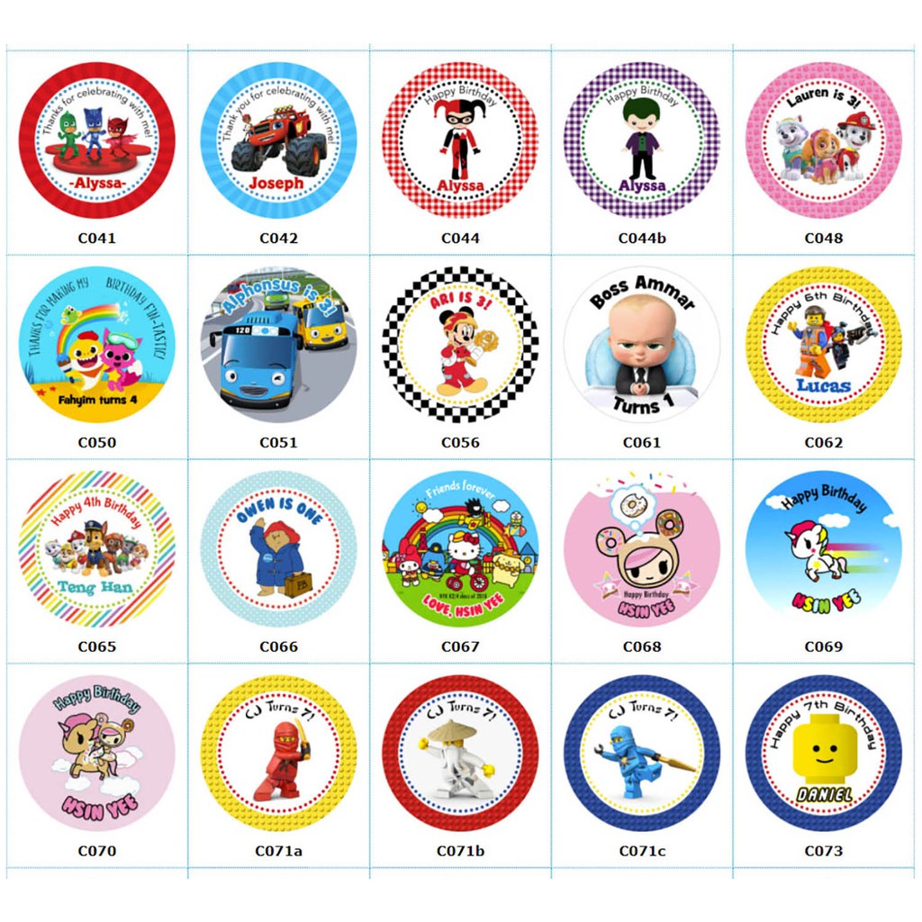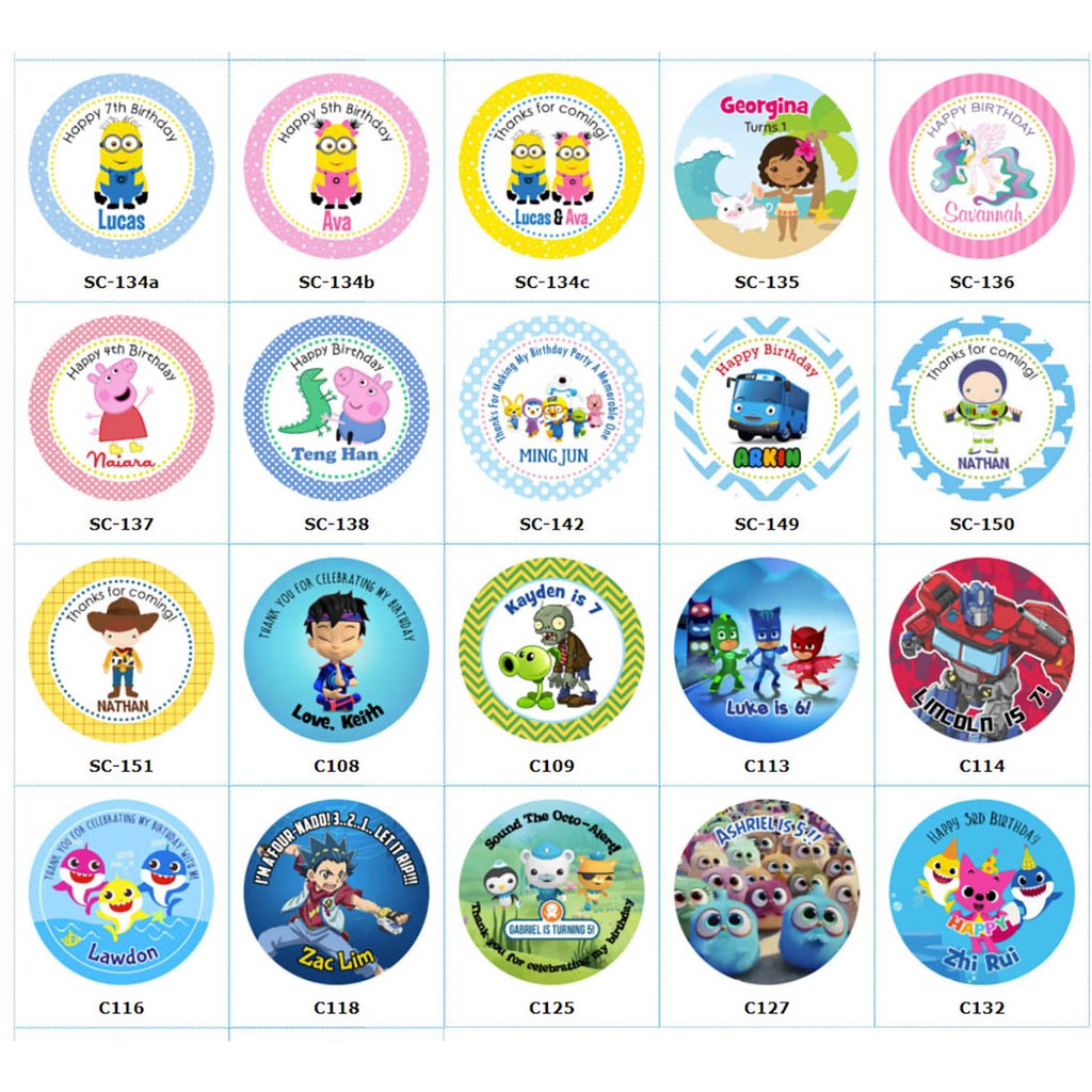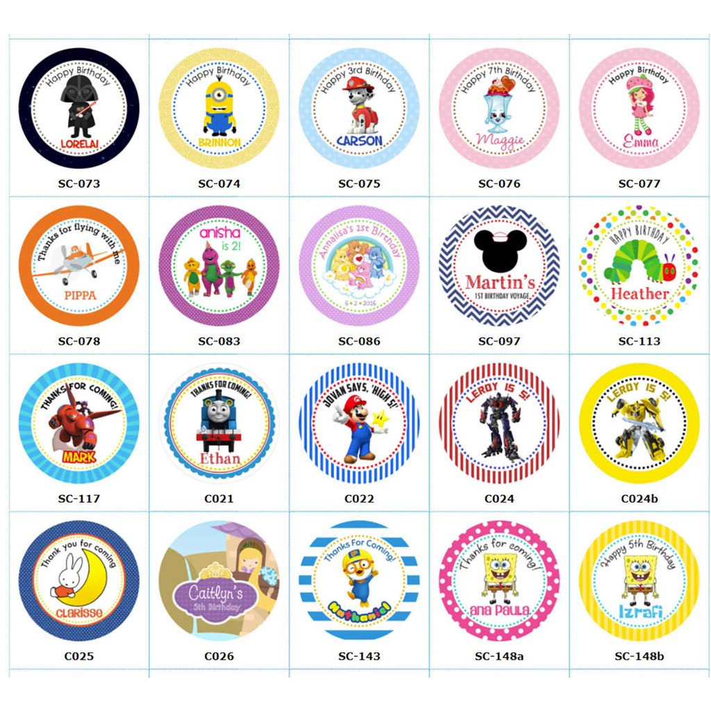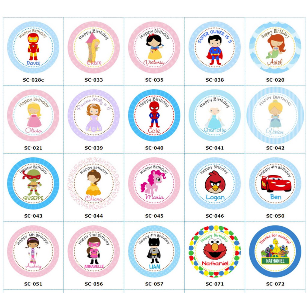 Personalised Goodie Bag / Party Favour Stickers (Famous Characters - MANY DESIGNS)