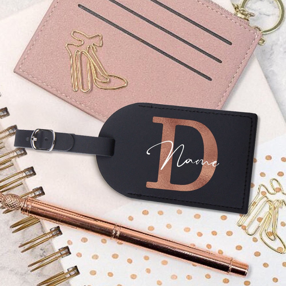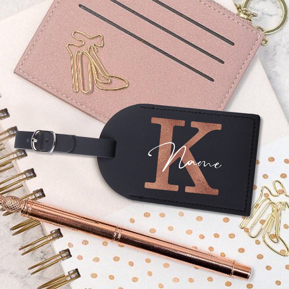Personalised Initial with Name Monogram Luggage Tag PU Leather for Suitcase Baggage Handbag Tags Travel Bag Label Tag Best Gift