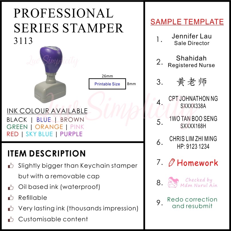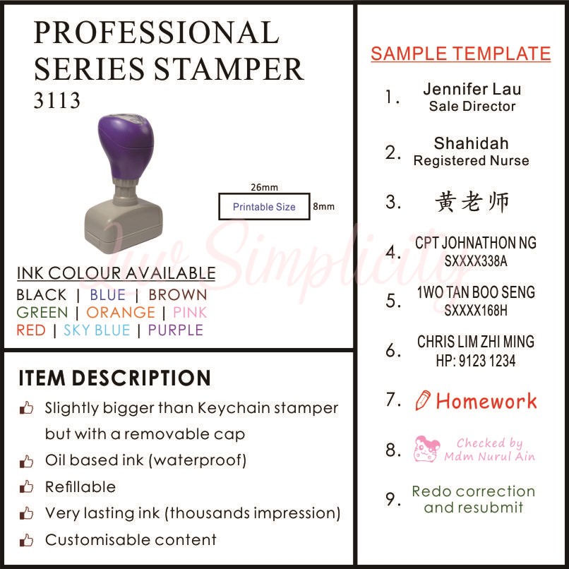 Personalised Ink Stamp / Rubber stamp / Refillable / Pre-inked / Self inking / Name stamp / Teacher / company stamp