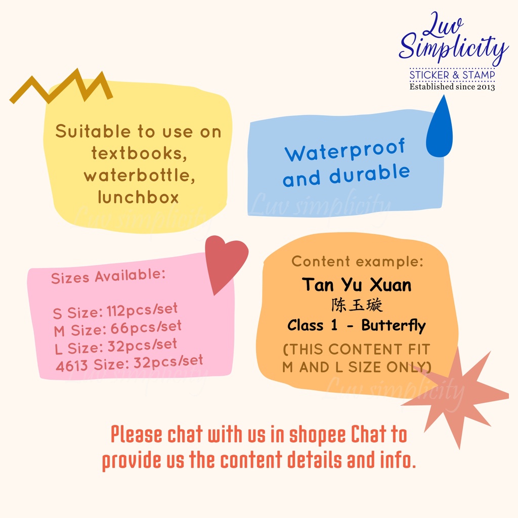 Personalised Name sticker plain for school and business use / School textbook / Waterproof / Product label