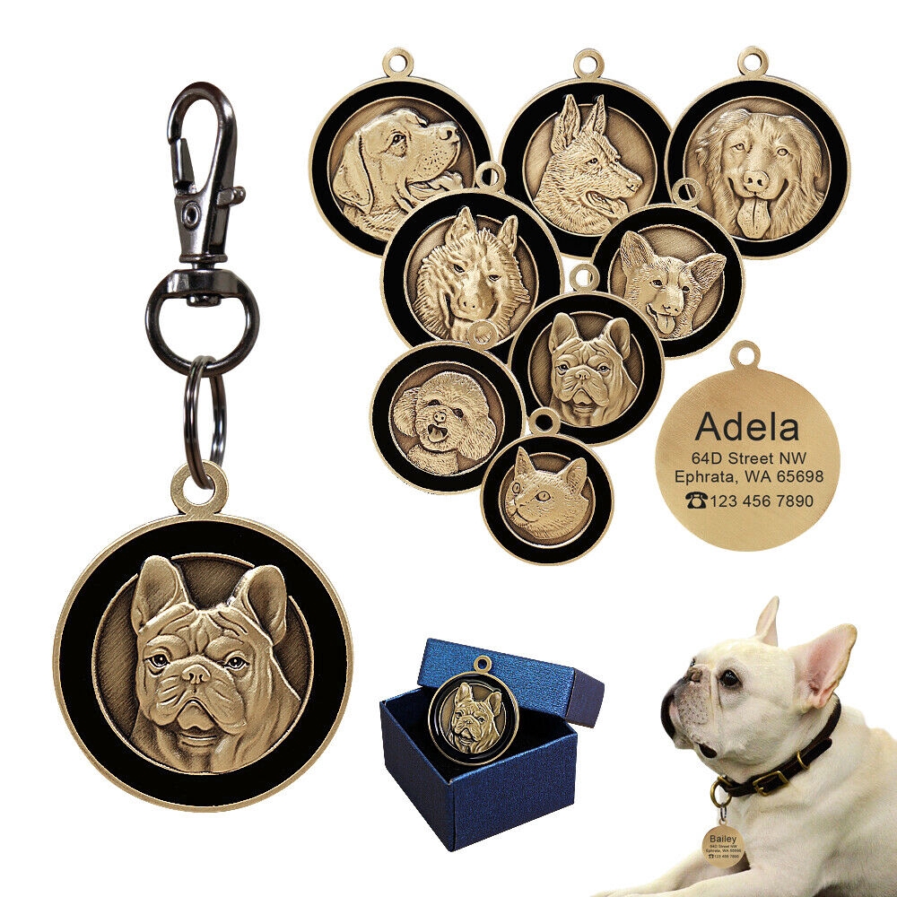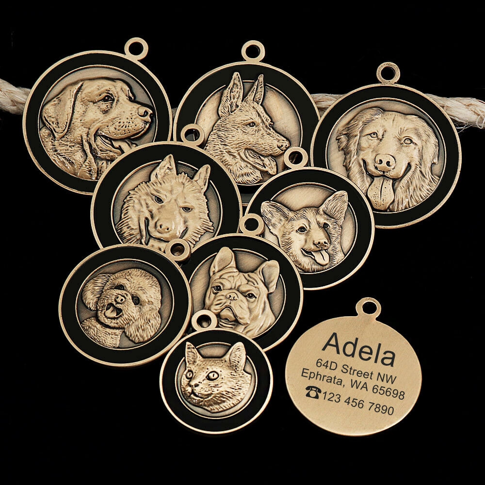 Personalized 3D Dog Breeds Solid Brass Pet ID Tags Custom Identification Tag