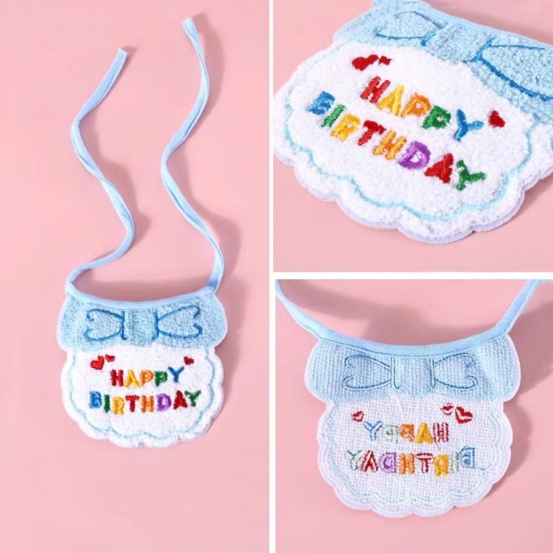 Pet Birthday Bib Scarf Cat Decorations Birthday Saliva Towel Dog Cute Embroidered Bib