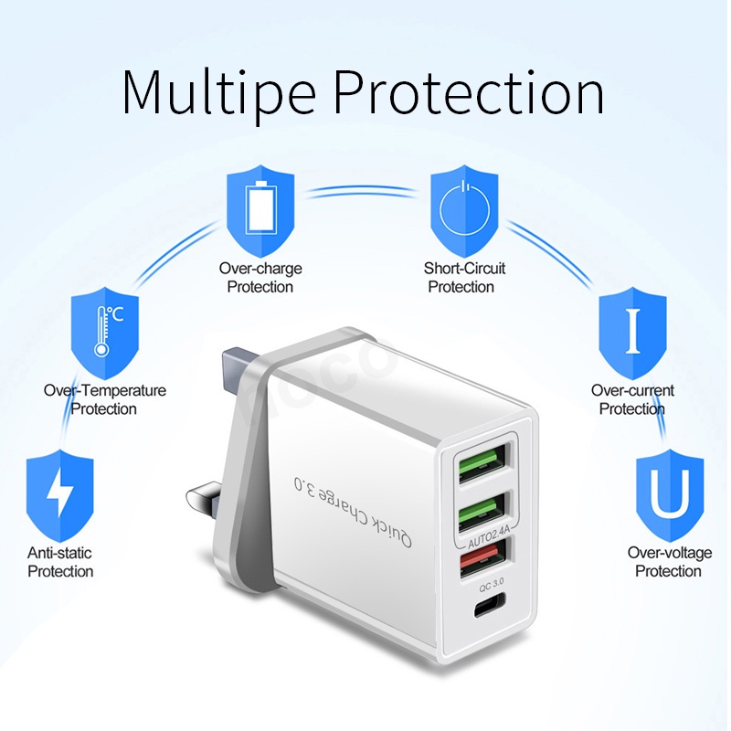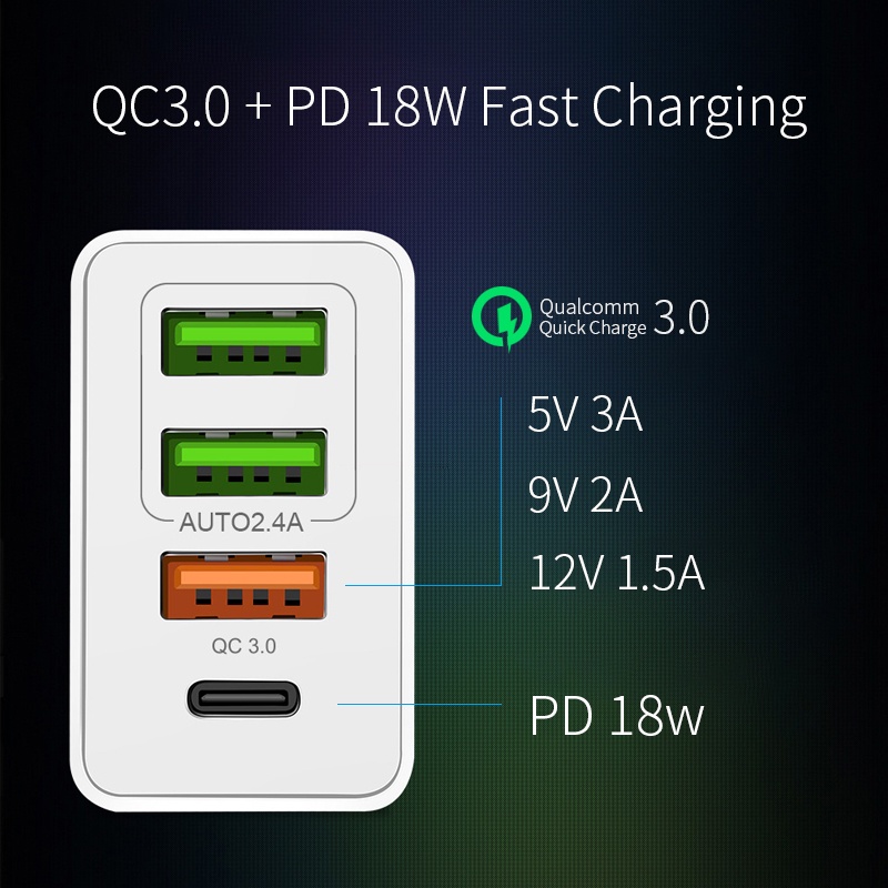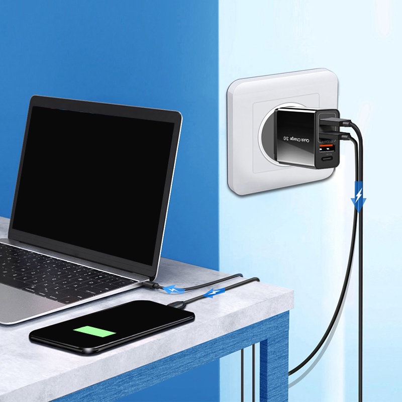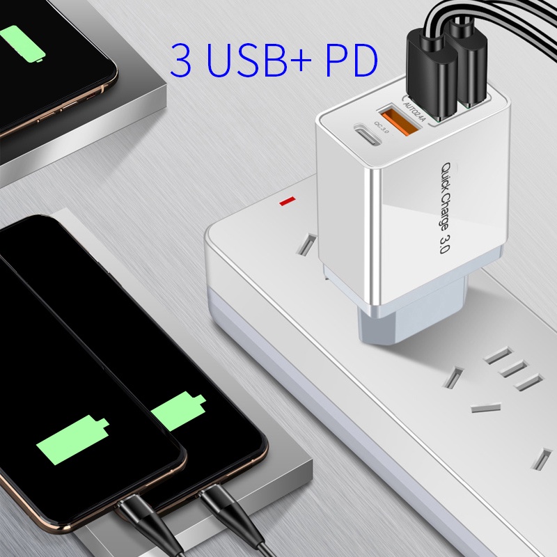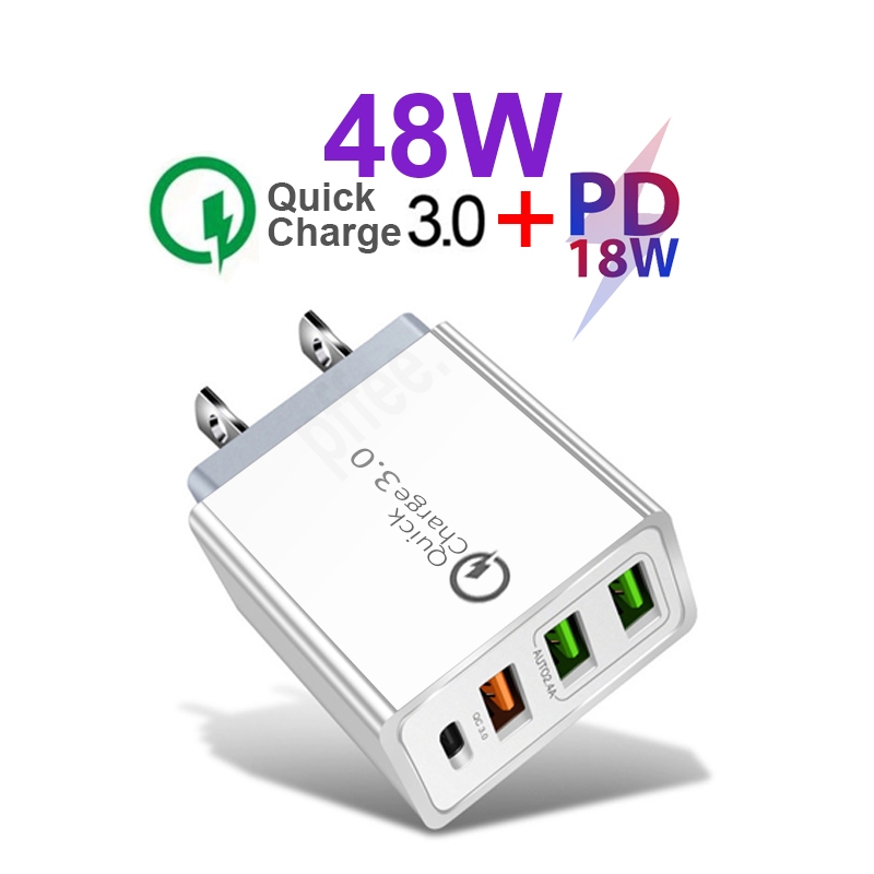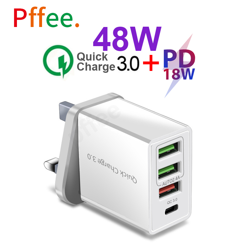 Pffee 50W 48W PD 20W 18w + Qualcomm Super Quick Charge 3.0 Fast Charging Charger Adapter Type C Plug Charger Adapter Travel USB Charging Station All Phones Universal