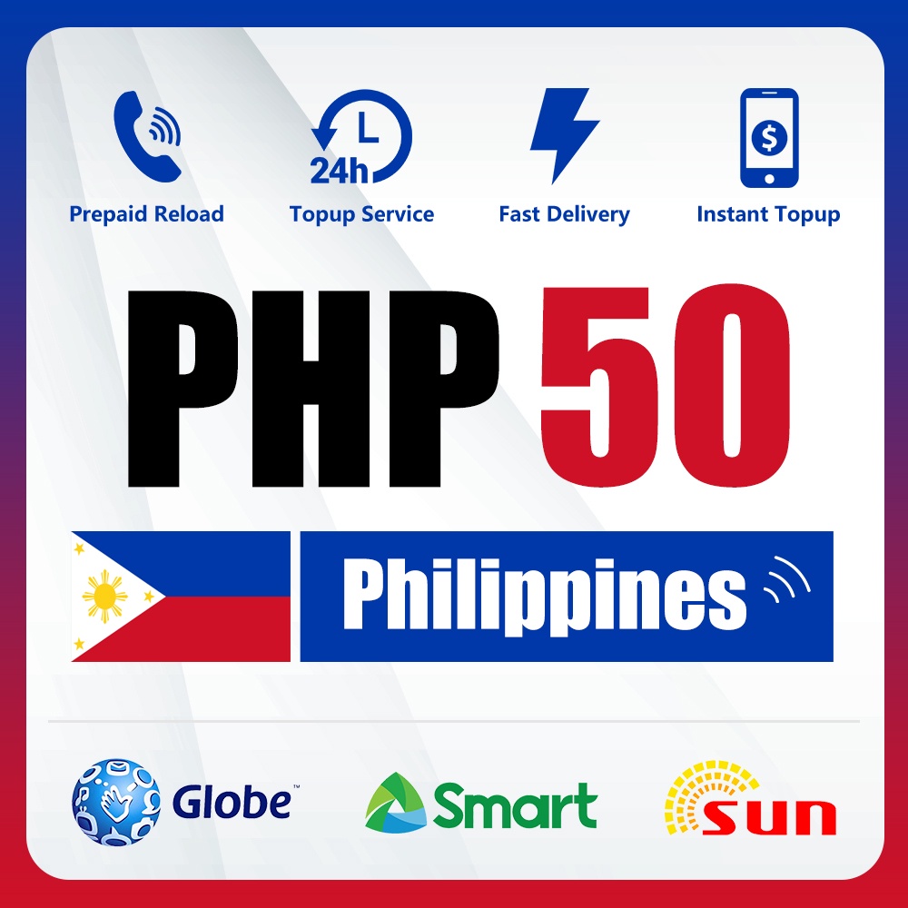 Philippines PHP 50 Topup Prepaid Reload [Click in the Email/SMS to topup Fast and Instant] (Telco Prepaid/Prepaid Phone)