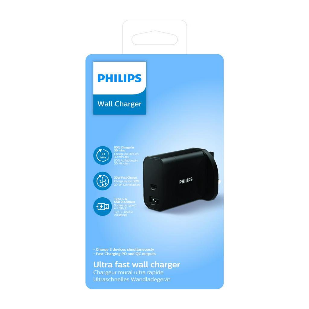 Philips DLP2621 Wall Charger 30W output | Power Delivery | Type C | USB-A port | 1 year warranty | Smart protection