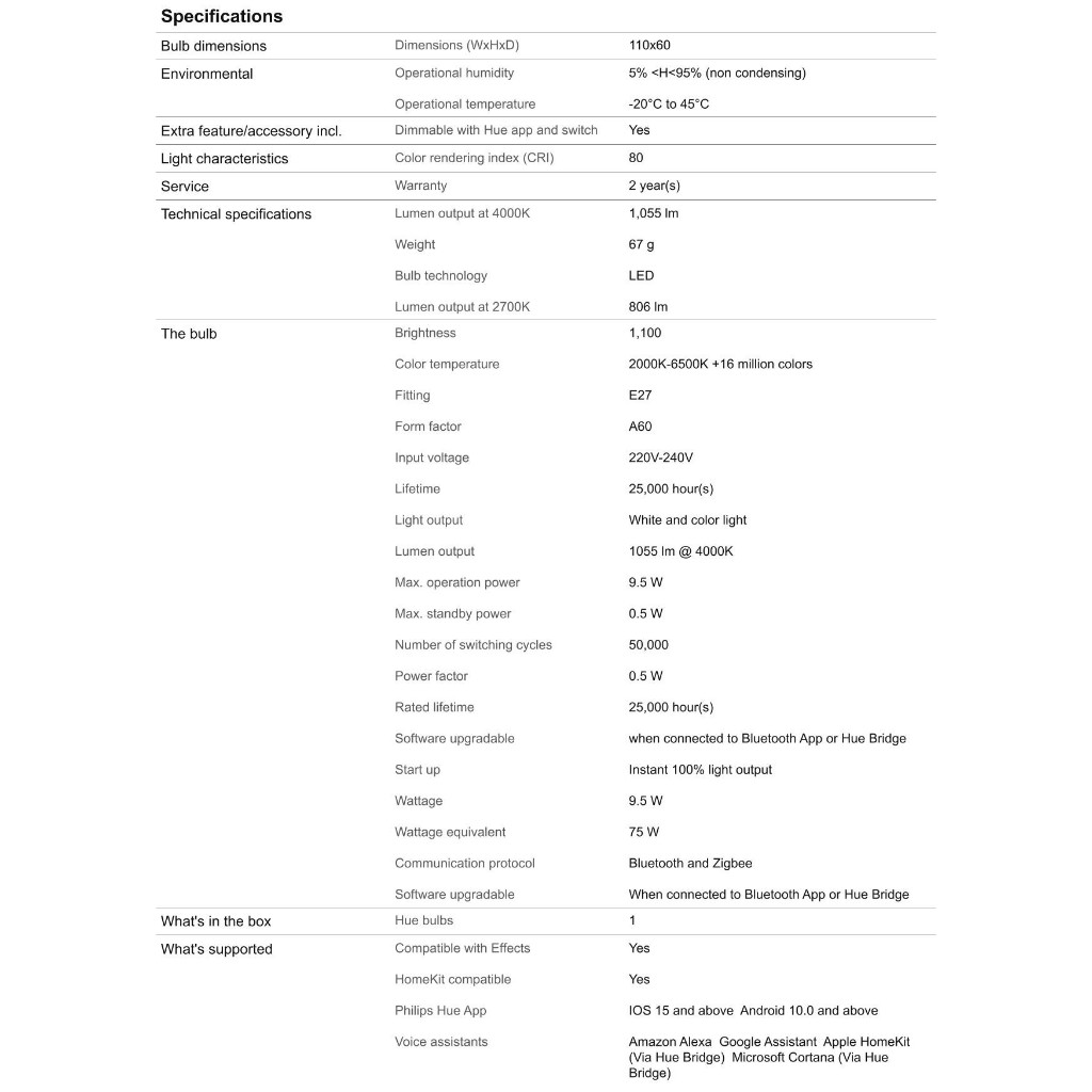 Philips Hue A60 - E27 Smart Bulb (White and Color Ambiance)