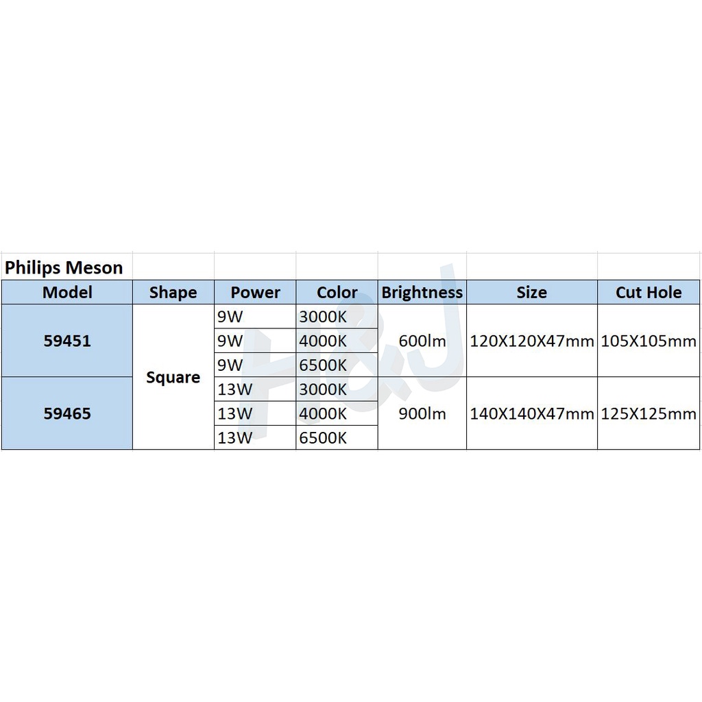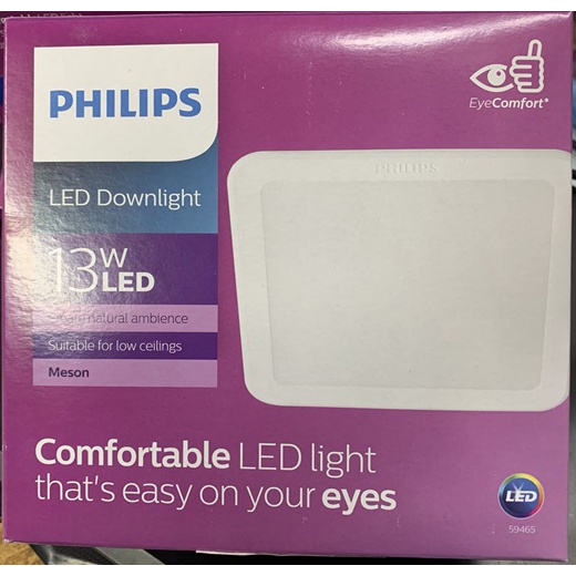 Philips LED Downlight Meson Square Shape 9W/13W 3000K/4000K/6500K Energy Saving Long Life Even Light Distribution
