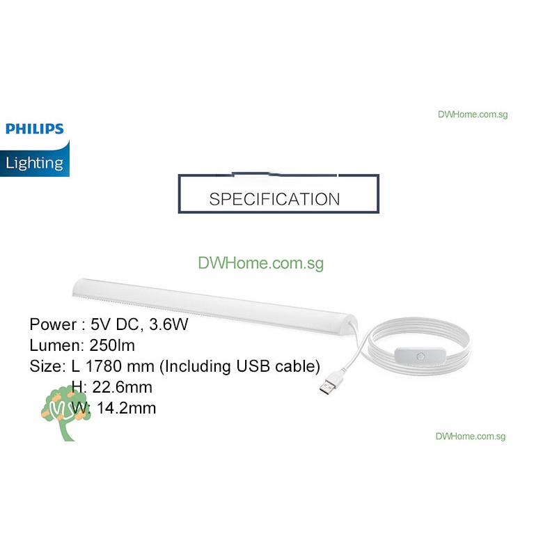 Philips LS261 Portable Linea LED batten wall light 28cm Length Study table Linear Lighting with a zest