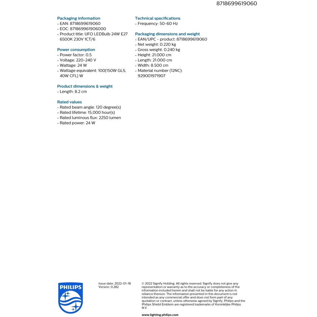 Philips UFO LED Bulb 15W / 24W E27 6500K (Cool Day Light)