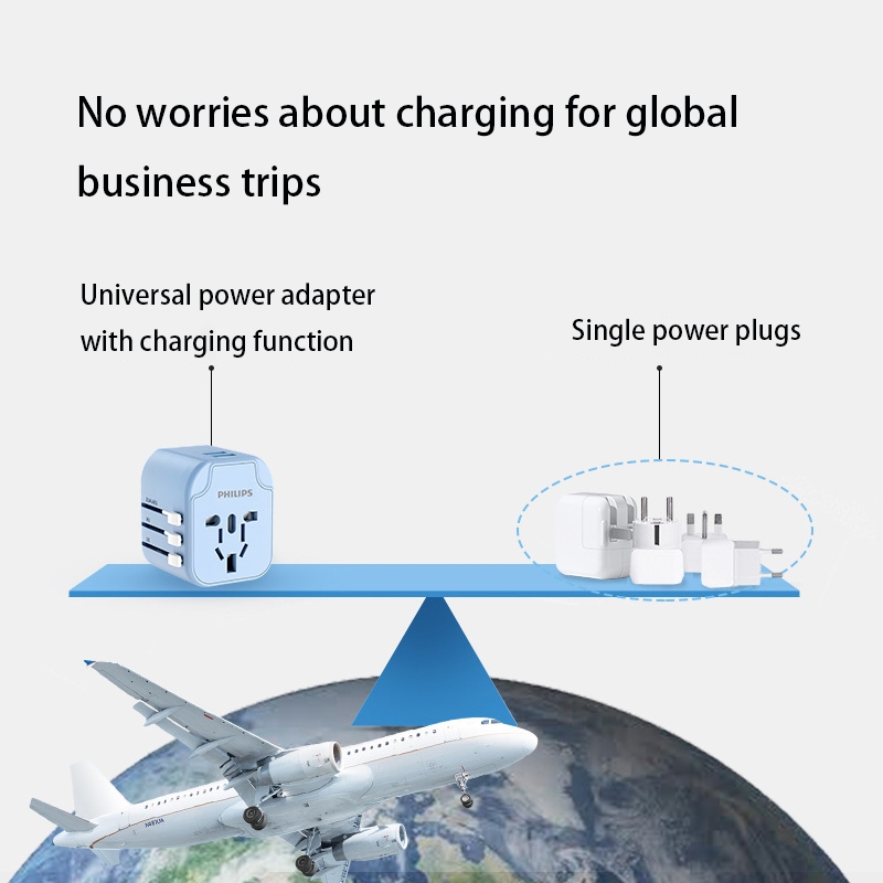 Philips Universal Travel Adapter All in One International Worldwide Wall Power Travel Adaptor with 2 USB Ports Fast