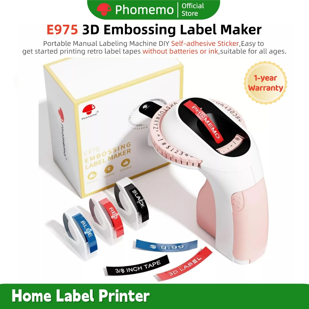 Phomemo 3D Embossing Label Maker E975 Portable Manual Labeling Machine, DIY Self-adhesive Sticke Maker,Great For Name,Date,Home Kitchen Storage