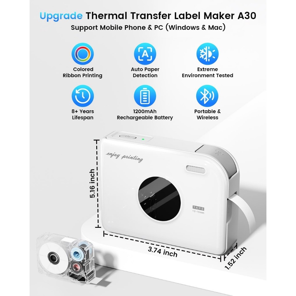 Phomemo A30 Label Sticker Printer,Portable Satin Ribbon Printer, Fabric Iron on Label Maker