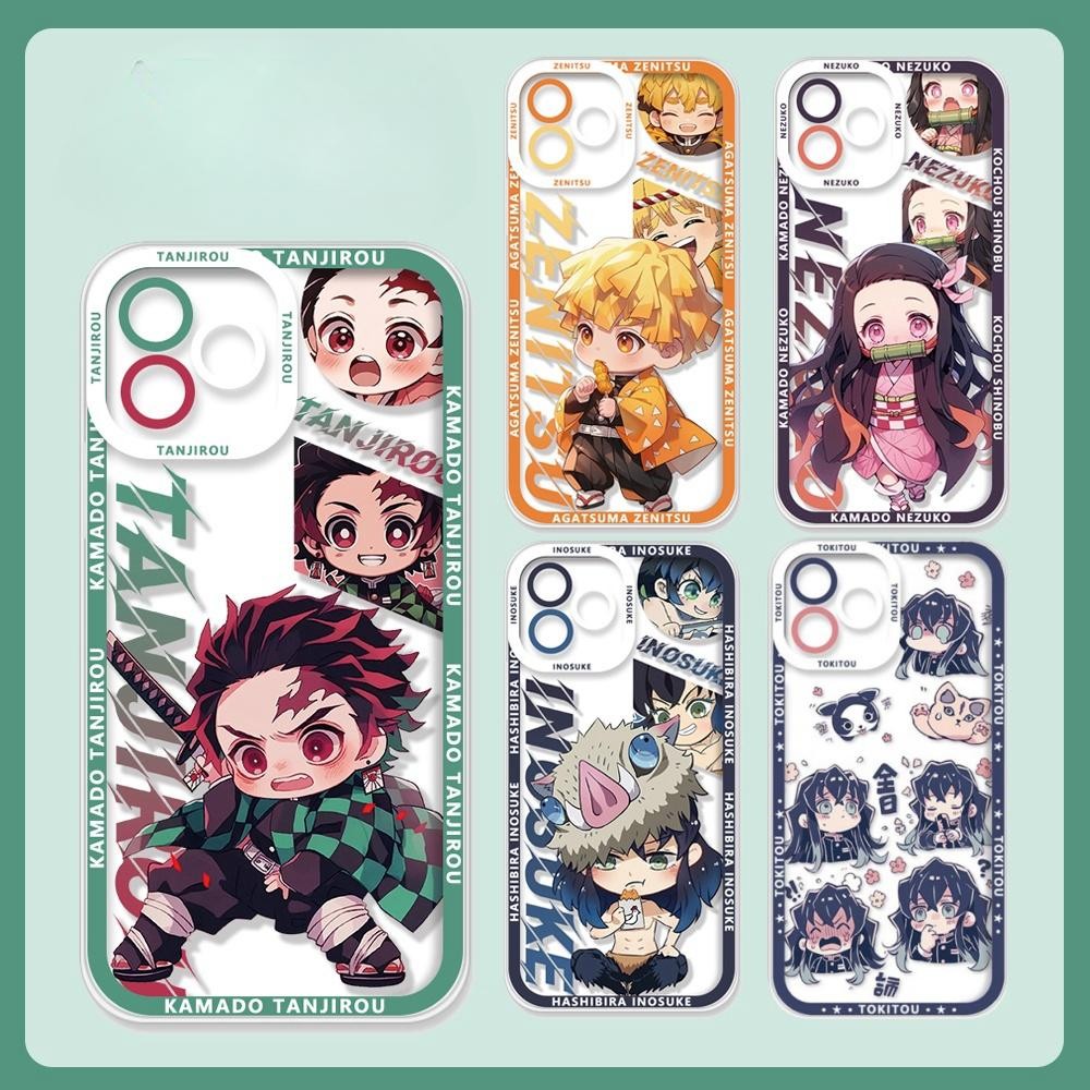 Phone Case For Iphone 15 Pro Max 11 12 13 14 Pro Max Casing Demon Slayer Kamado Nezuko Tanjirou Zenitsu Inosuke Tokitou Muichirou Cute Anime Silicone Transparent
