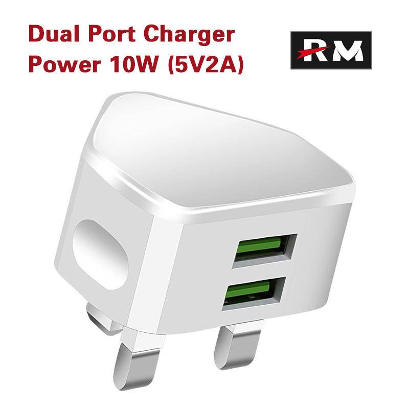 Phone Charger White 3 Pin USB UK Charger Adapter Plug 5W 10W 5V 1A 2A Travel Adapte To USB Cable