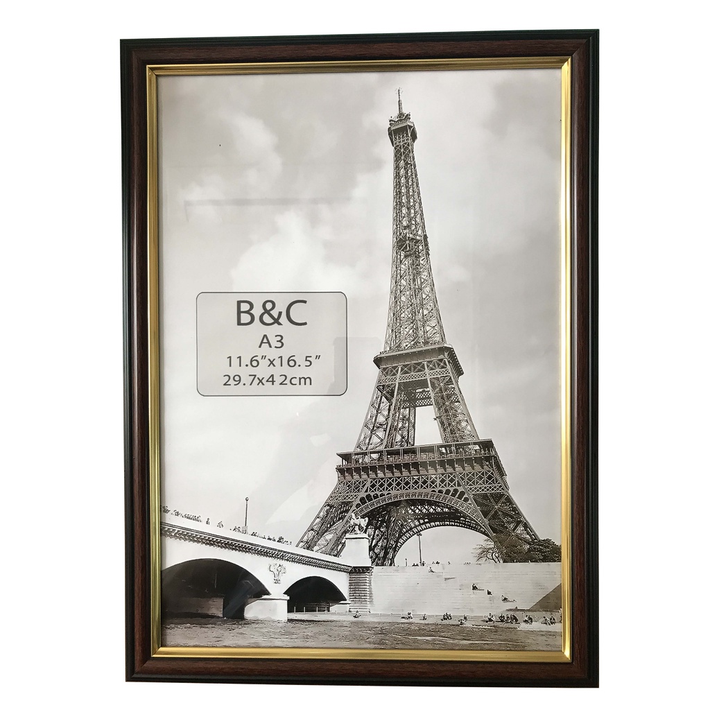 Photo Frame Size A4 / 10R / 11R / 12R / A3 - Dark Brown Red With Gold Line (1pc)