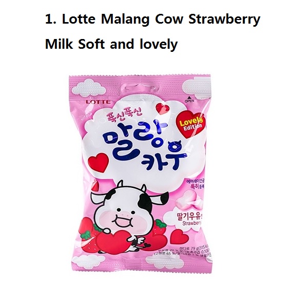 Pick 5 Korean candies. Soft Cow Milk Strawberry Anytime Enjoy the whole almond flavored candy