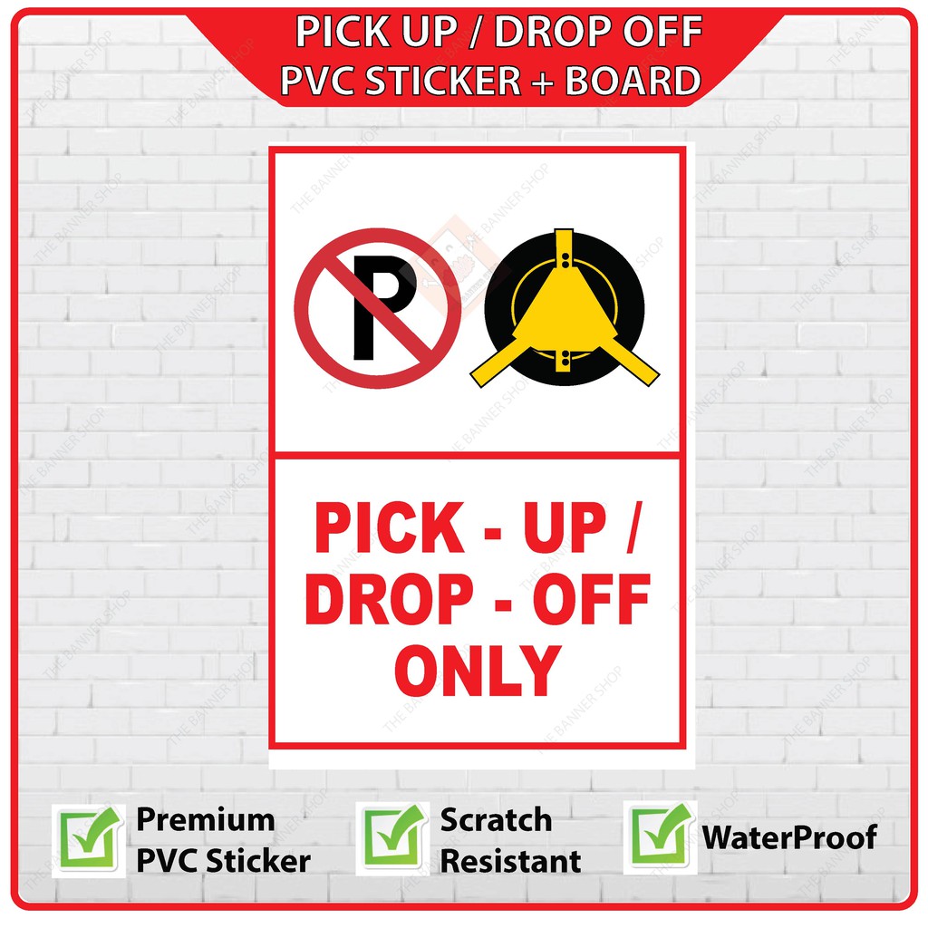 Pick Up/ Drop Off Only Sign Sticker + Board