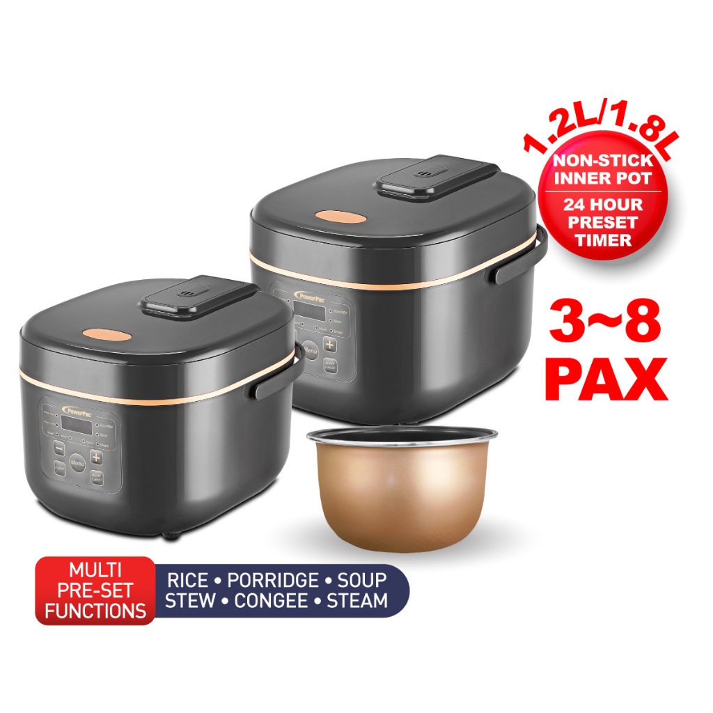 PowerPac Multi-Purpose Digital Rice Cooker 1.2L/1.8L with Non-stick Inner Pot (PPRC532/PPRC538)