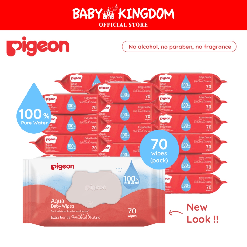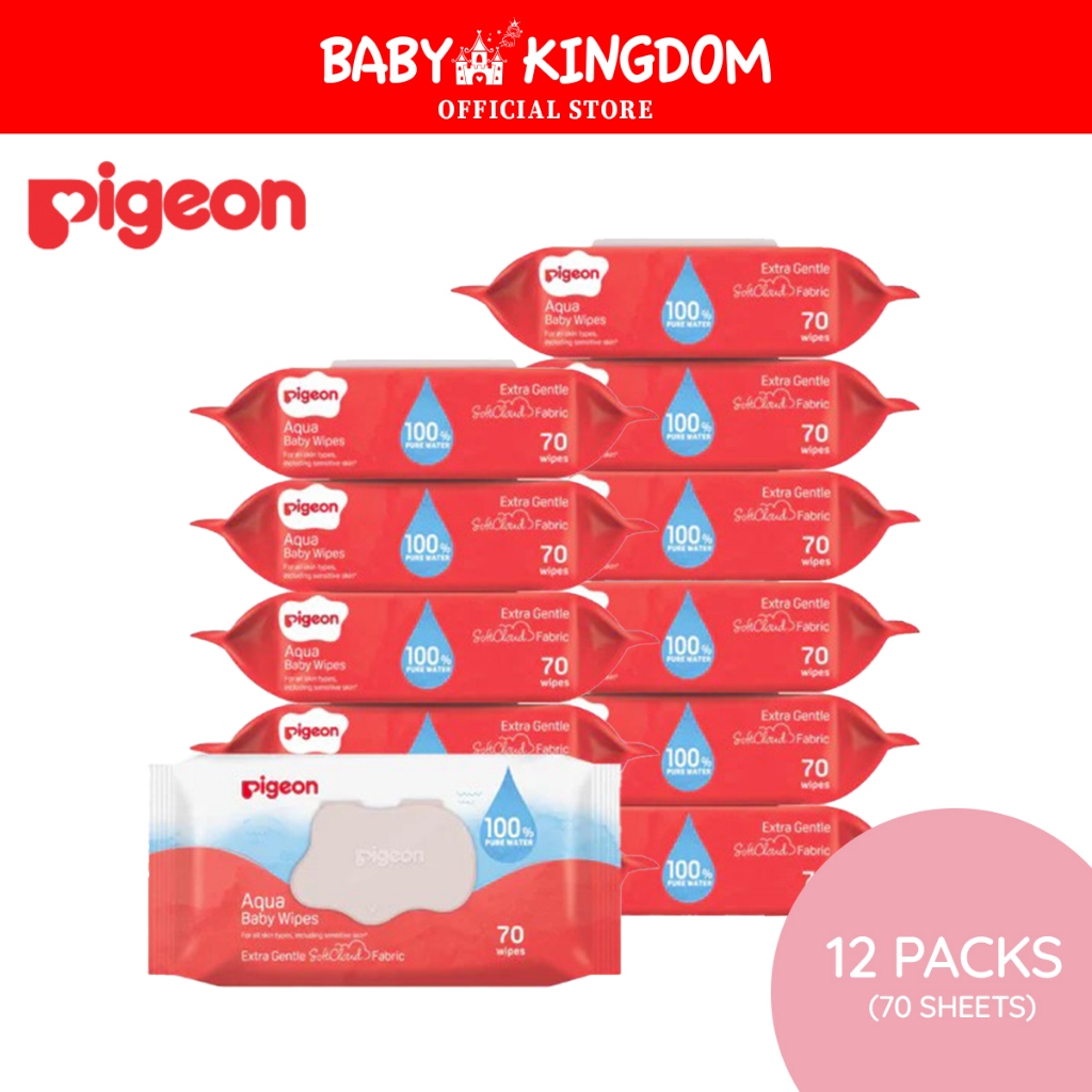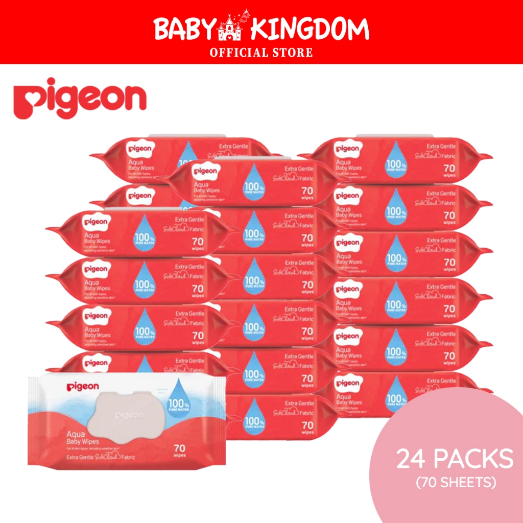 (NEW) Pigeon Aqua Baby Wipes Hard Lid Cover 70pcs (12packs / 24packs) - Baby Kingdom