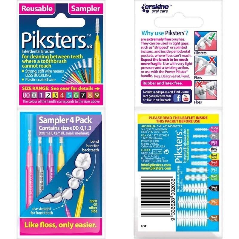 Piksters interdental Brush (10 pcs/ pack) size 00, 0, 1,2,3,4,5,6,7,variety pack (00-6) dental floss