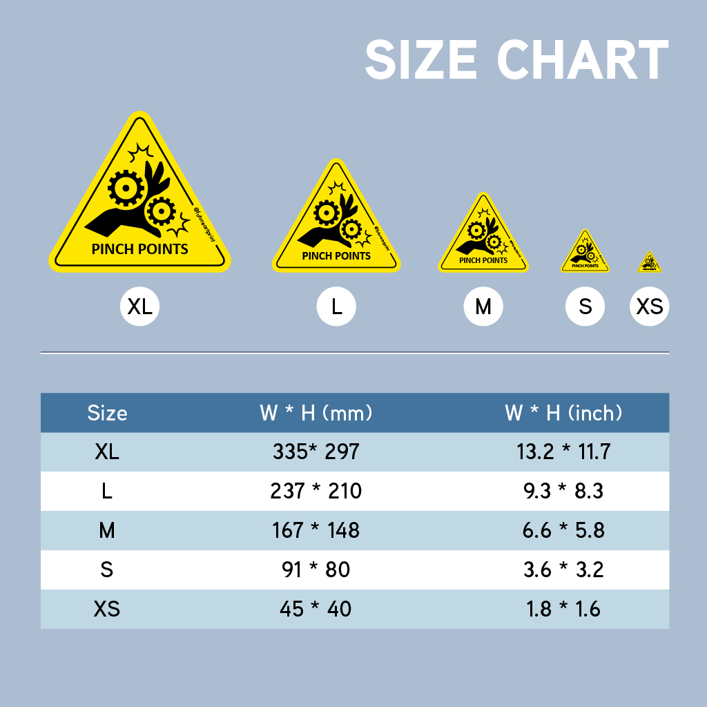 Pinch Points. Premium Triangle Sticker Sign Warning Caution Danger Signage Safety Label. Machine Hazard Finger Risk.