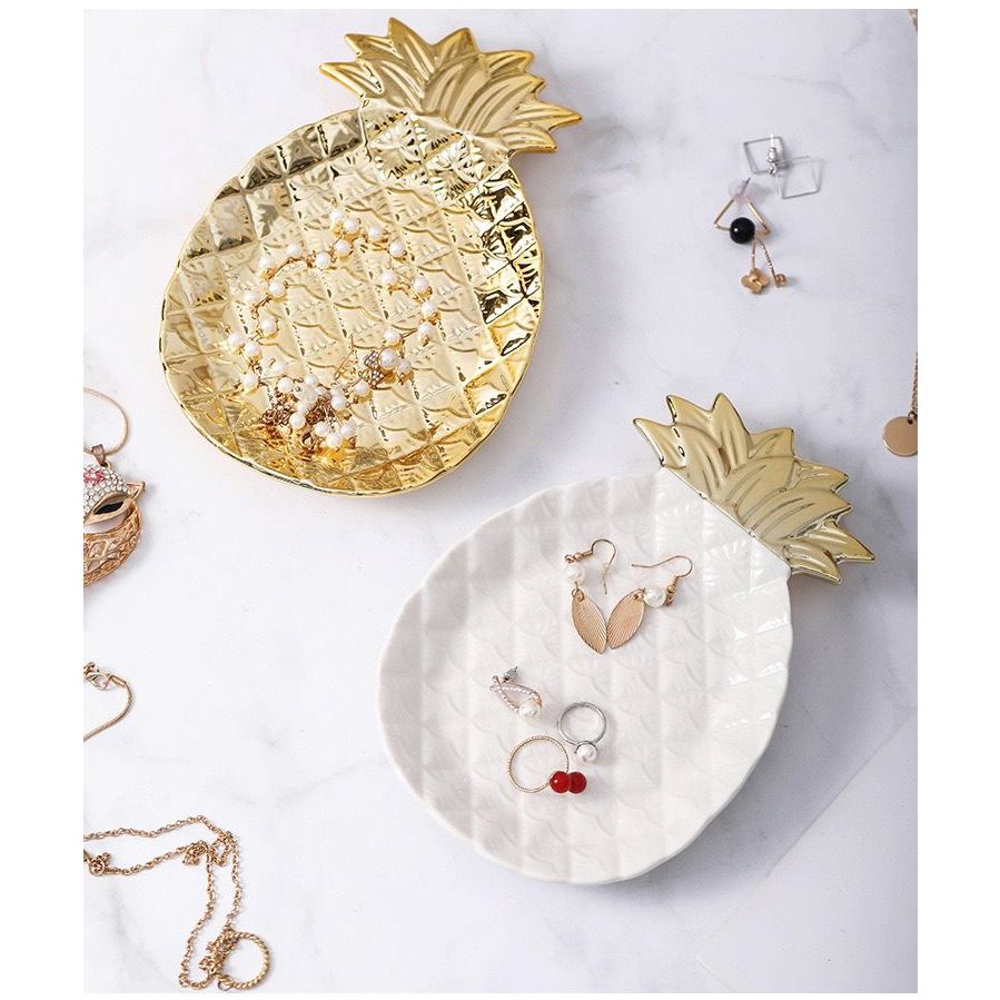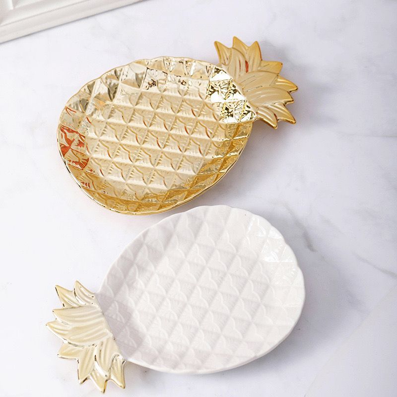 Pineapple Ceramic Golden Plate // Pineapple-Shaped Gold Plate with Aesthetic Gold Display