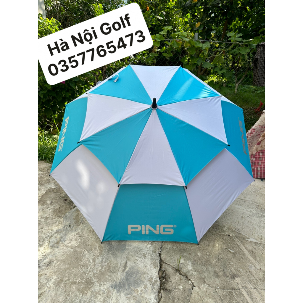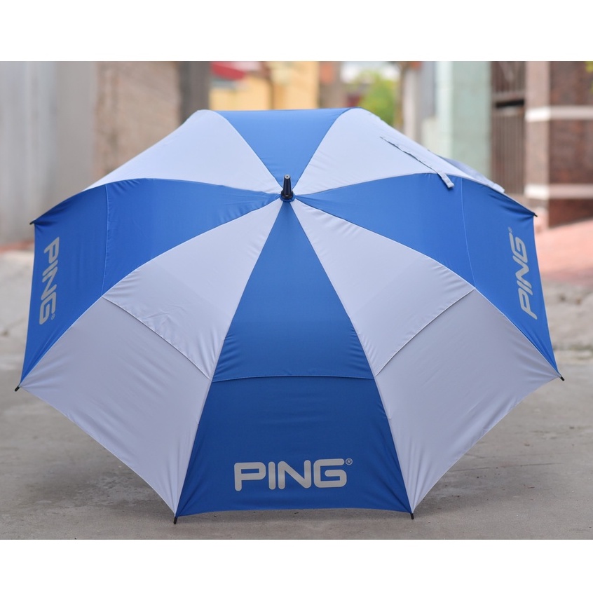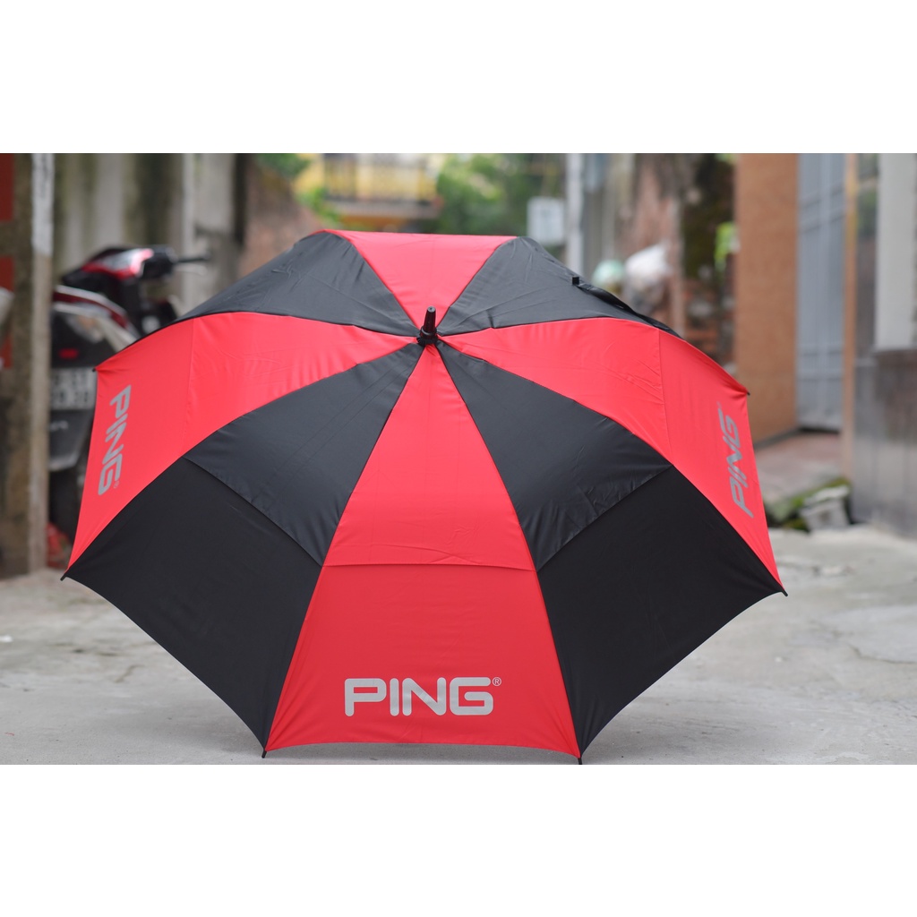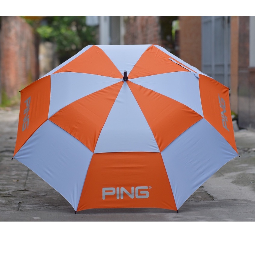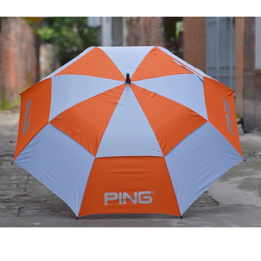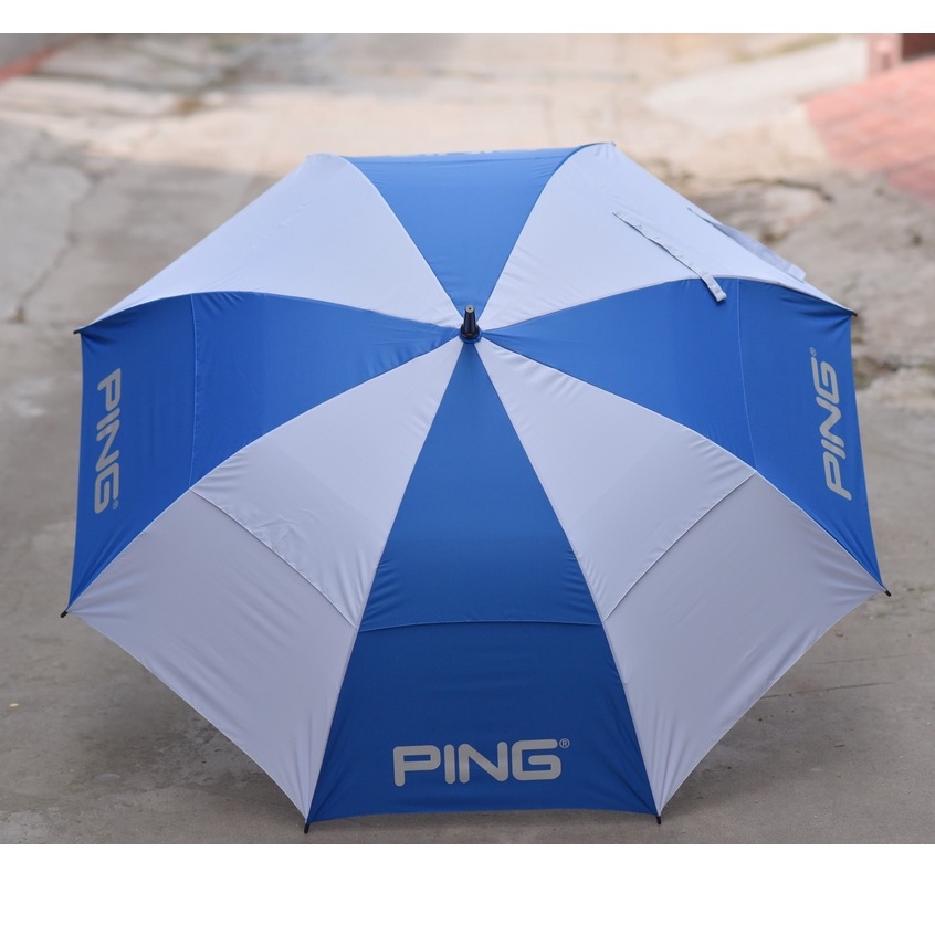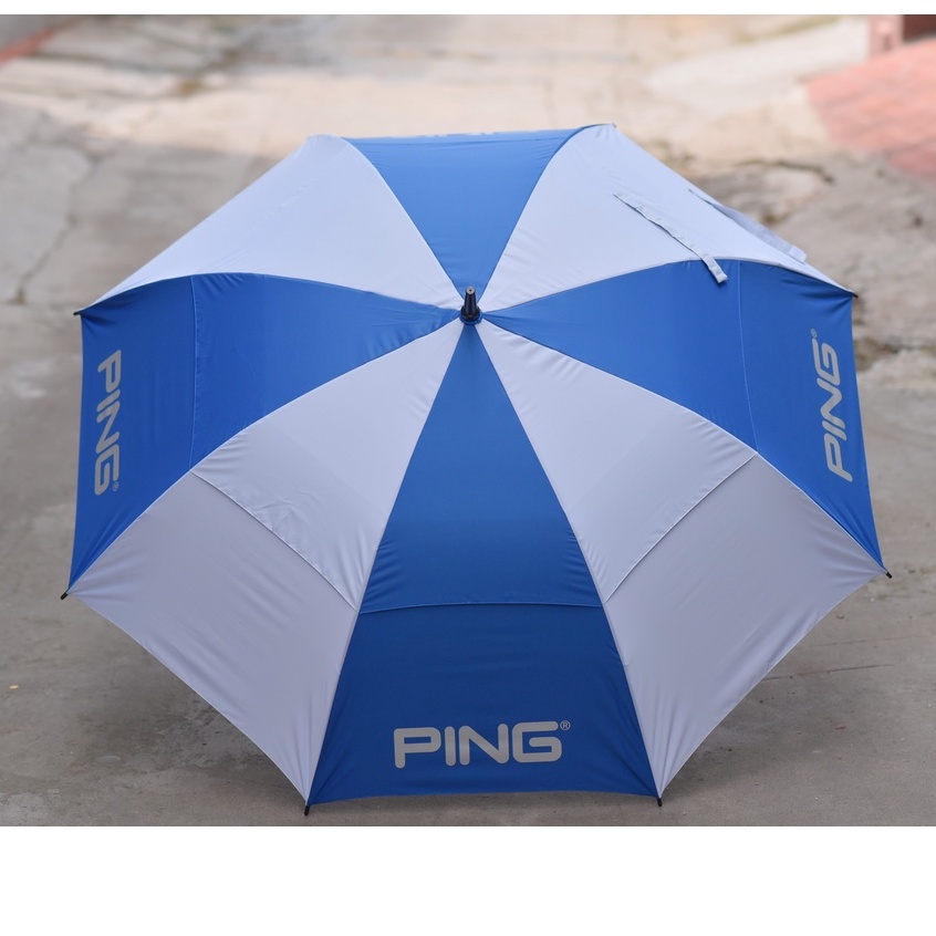 Ping brand golf umbrella with hard spoke rim - anti-flip - two-tier umbrella