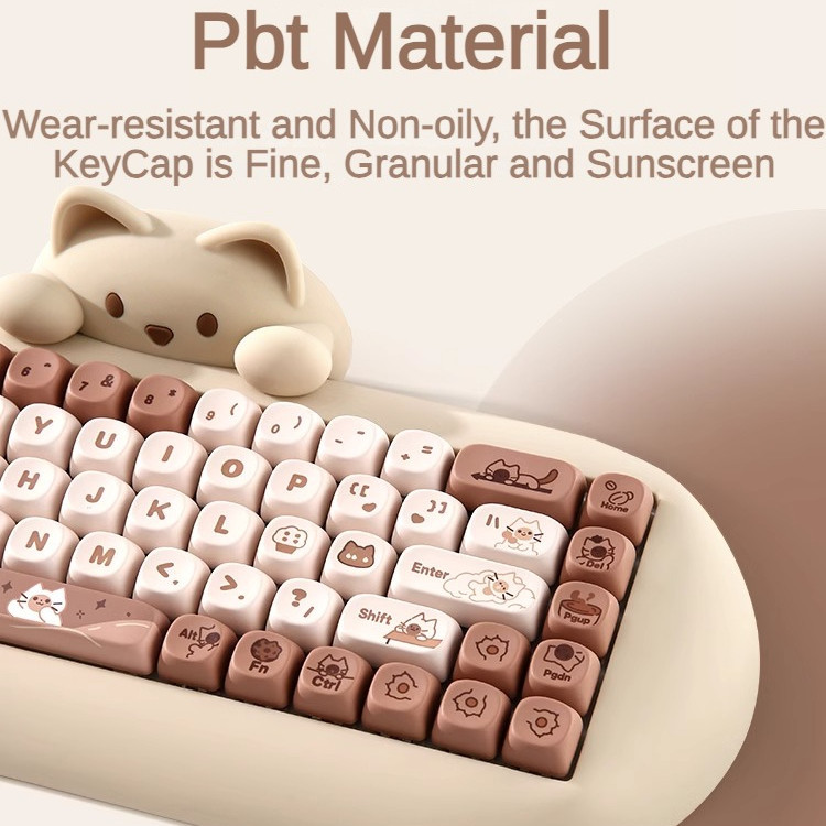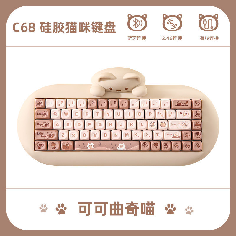 Pink Cute C68 Cat Silicone Keyboard Three-mode Bluetooth 2.4g Wired Hot Swap Mechanical Keyboard Office Girls Adapt To Laptops, Mobile Phones, Tablets
