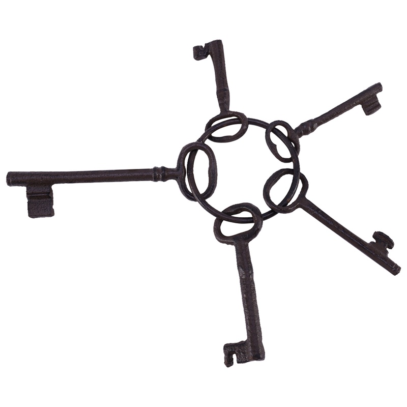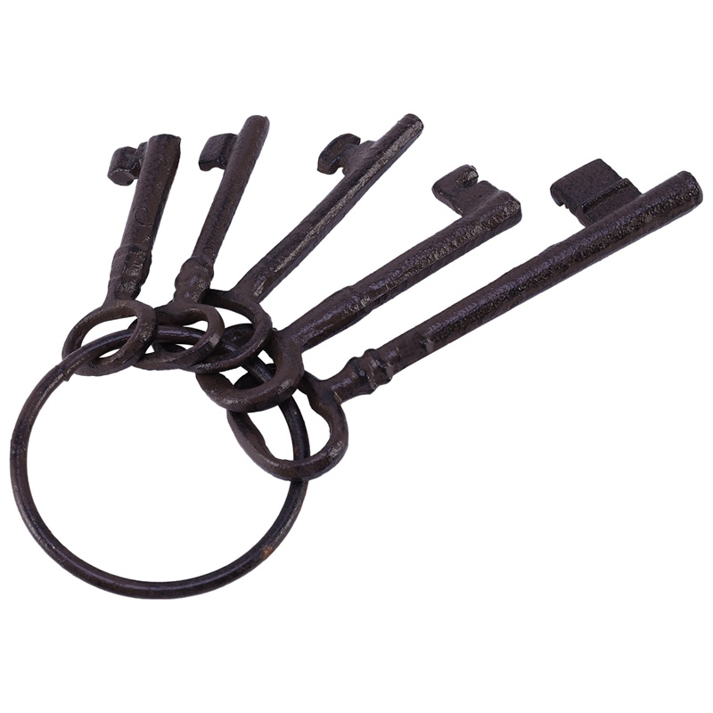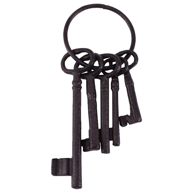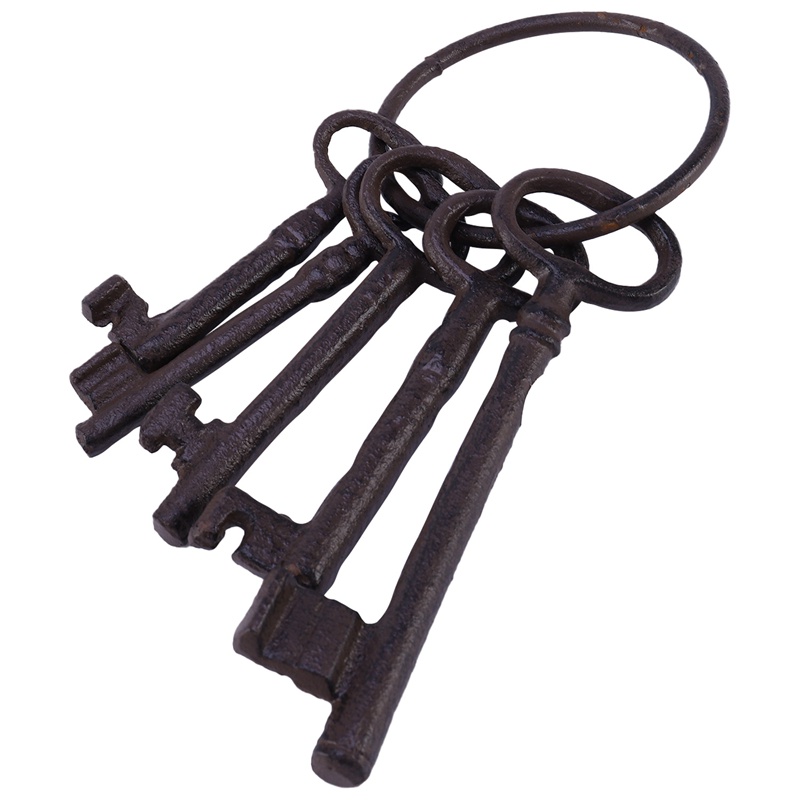 Pirate Treasure Chest Keys Set,Key Ring Antique Style,Rustic Cast Iron Skeleton Key Wall Decor, Costume Prop (5 Keys)